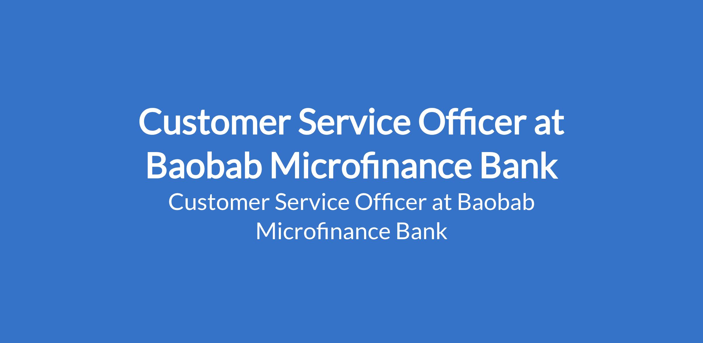 Baobab Microfinance Bank is recruiting to fill the position of: Customer Service Officer. The position is located in Ilorin, Kwara State. Interested candidates should possess a Bachelor`s Degree with 0 - 2 years experience.