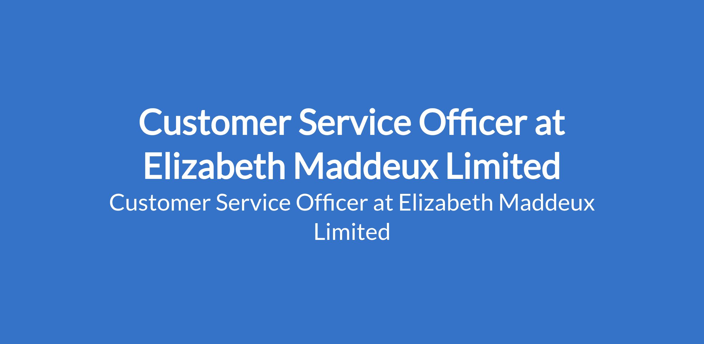 Elizabeth Maddeux Limited is recruiting to fill the position of: Customer Service Officer. Salary: N250,000 per month. Interested candidates should possess a Bachelors Degree in Business Administration, Marketing, Finance, or related fields with 24 years of proven experience in customer service, preferably in banking, microfinance, or financial services.
