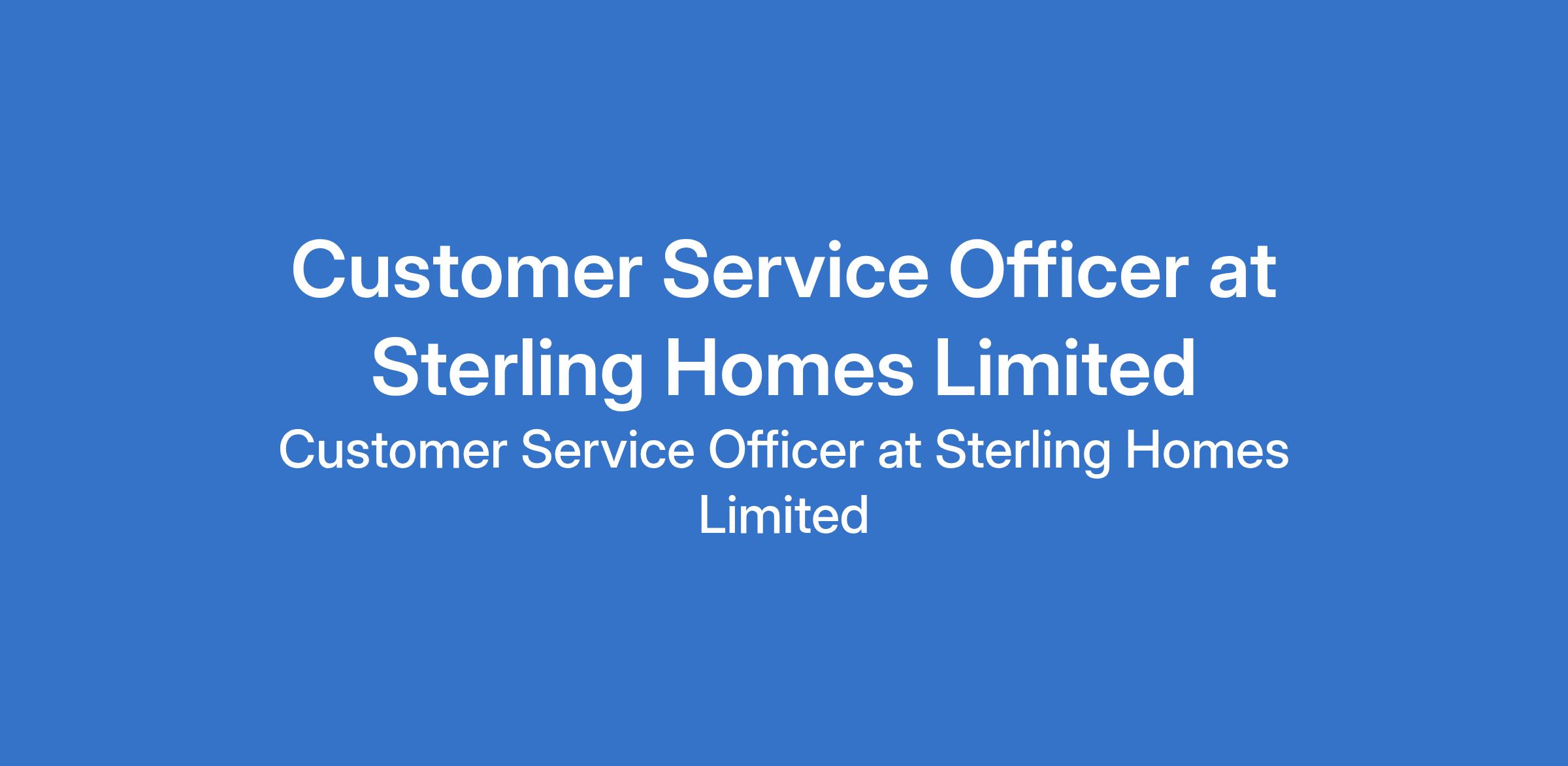 Customer Service Officer at Sterling Homes Limited