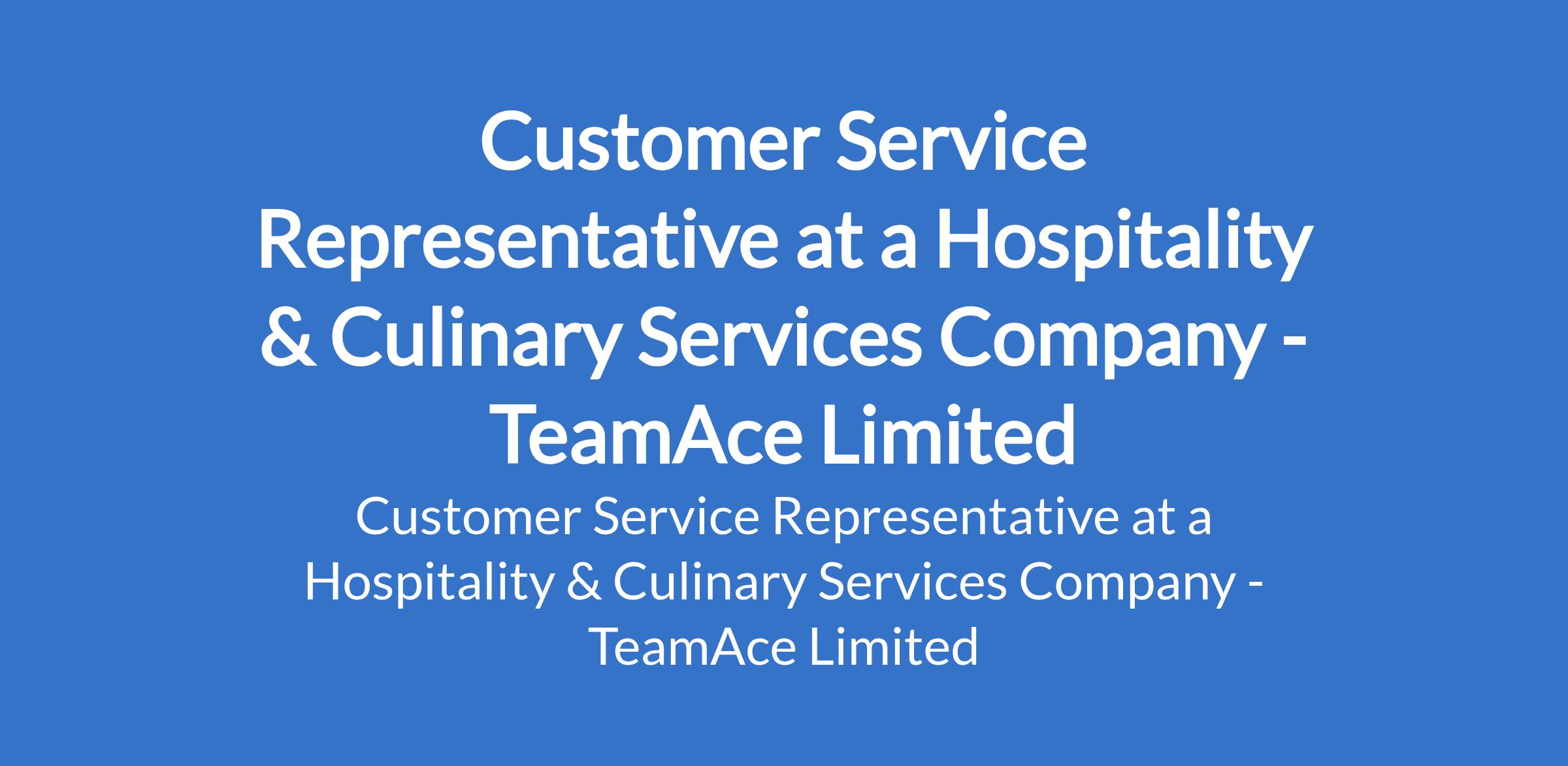 TeamAce Limited - Our client, a reputable organization in the Hospitality & Culinary Services sector is recruiting to fill the position of: Customer Service Representative. The position is located in Ikoyi, Lagos State. Salary: N250,000 - N300,000 / month. Interested candidates should possess a Bachelors Degree in Business Administration, Communications, or a related field with years experience in customer service (hospitality experience is an advantage).