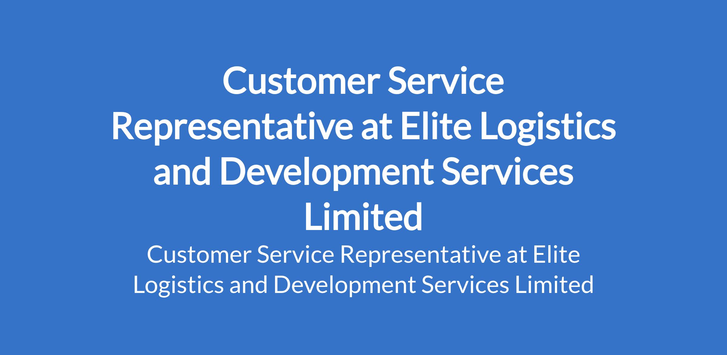 Elite Logistics and Development Services Limited is recruiting to fill the position of: Customer Service Representative. The position is located in Lagos State. Salary: N120,000 - N180,000 monthly. Interested candidates should possess a High School Diploma with proven customer support experience or experience as a Client Service Representative.