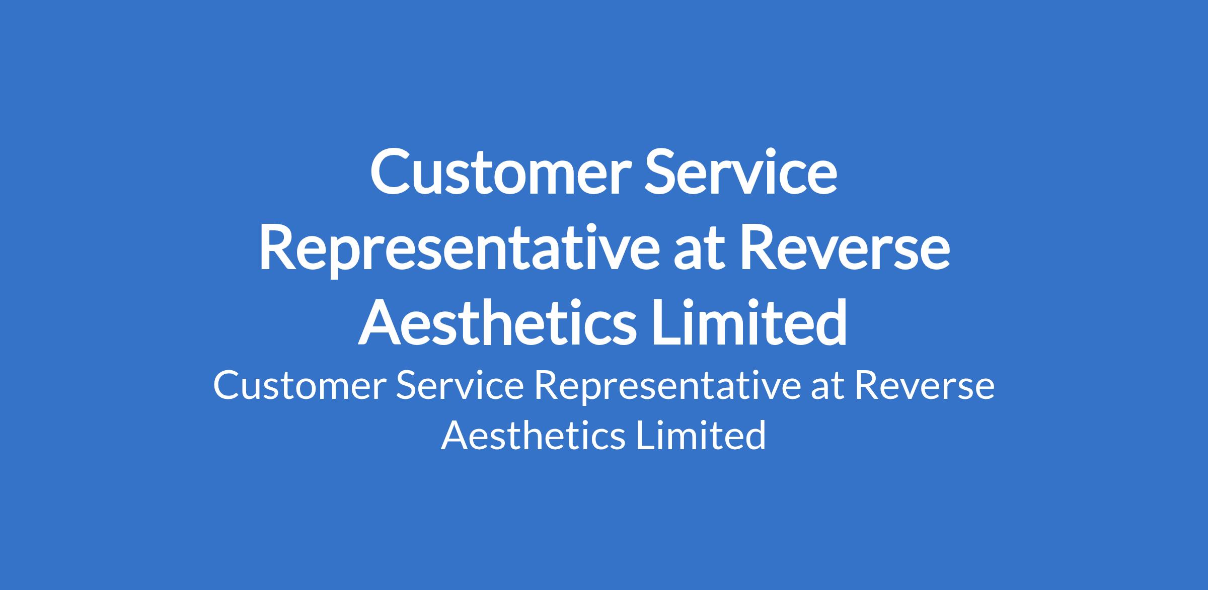 Customer Service Representative at Reverse Aesthetics Limited
