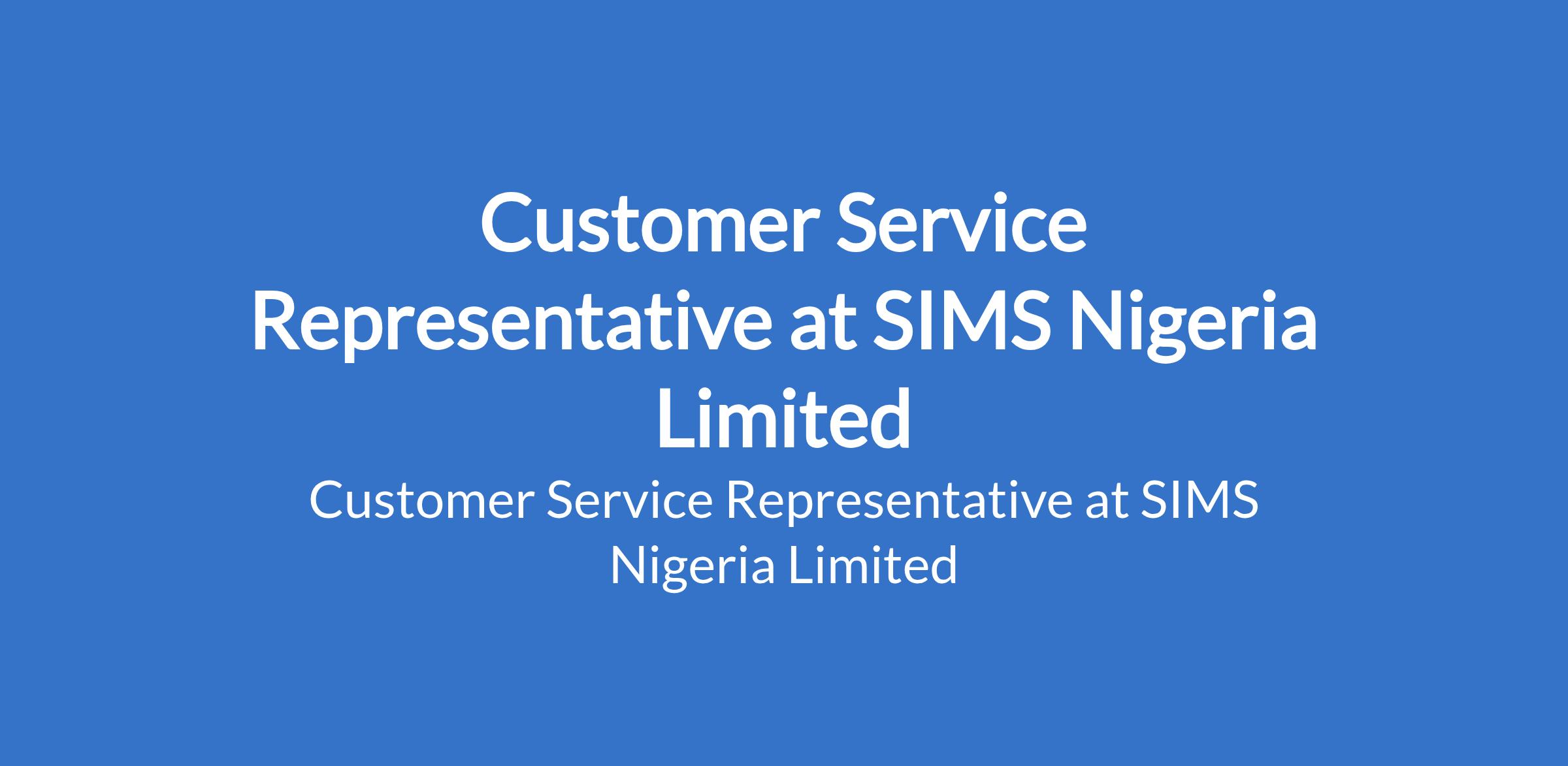 SIMS Nigeria Limited is recruiting to fill the position of: Customer Service Representative. The position is located in Allen, Lagos State. Interested candidates should possess a minimum of 2nd class HND / B.Sc. / BA Degree in any discipline with a minimum of 2 years proven experience in a customer service role.