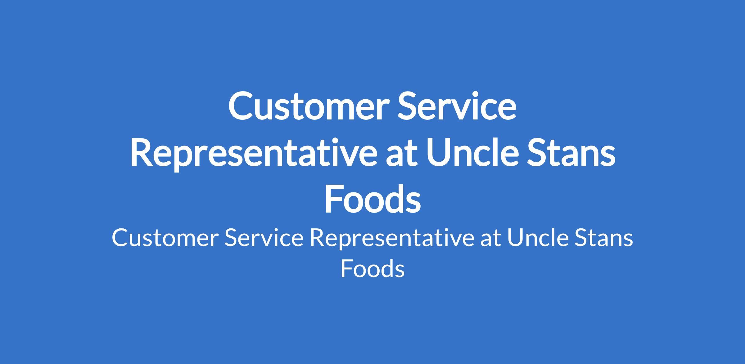 Uncle Stans Foods is recruiting to fill the position of: Customer Service Representative. The position is located in Lagos State. Salary: N130,000 Monthly. Interested candidates should possess an OND / HND / B.Sc in any field with 13 years experience in customer service or a similar role.