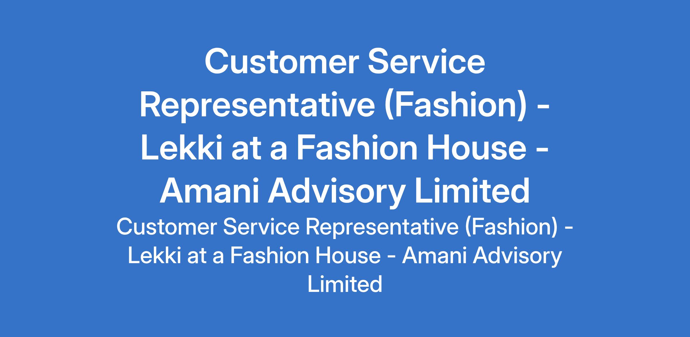 Amani Advisory Limited - Our client, a fashion house is recruiting to fill the position of: Customer Service Representative (Fashion). The position is located in Lekki, Lagos State. Salary: N150,000 monthly. Interested candidates should possess a minimum of OND or current undergraduate in any discipline. Proximity to location is important.