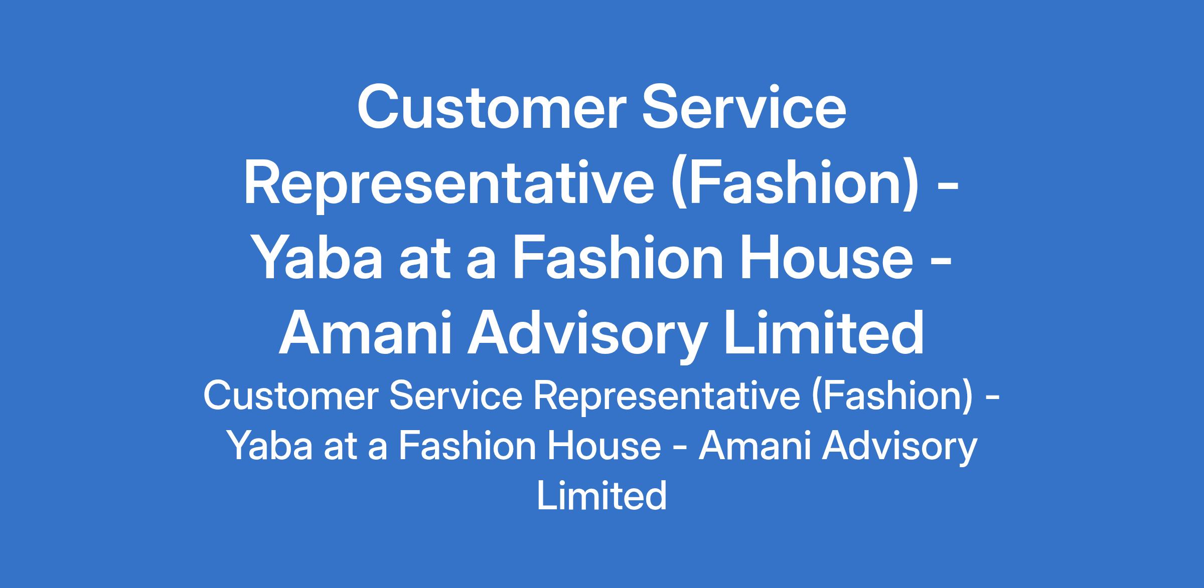 Amani Advisory Limited - Our client, a fashion house is recruiting to fill the position of: Customer Service Representative (Fashion). The position is located in Yaba, Lagos State. Salary: N150,000 monthly. Interested candidates should possess a minimum of OND or current undergraduate in any discipline.