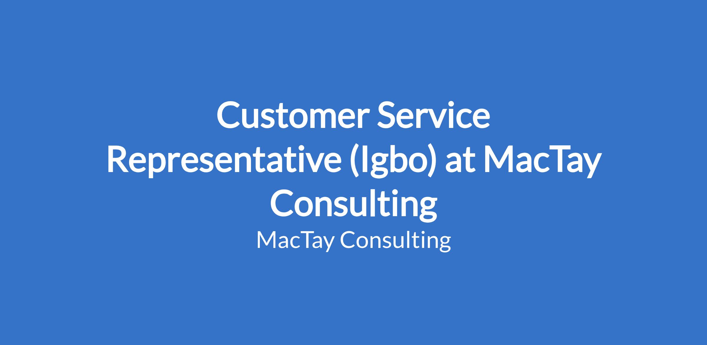 Must be proficient in Igbo language and fluent in English.
