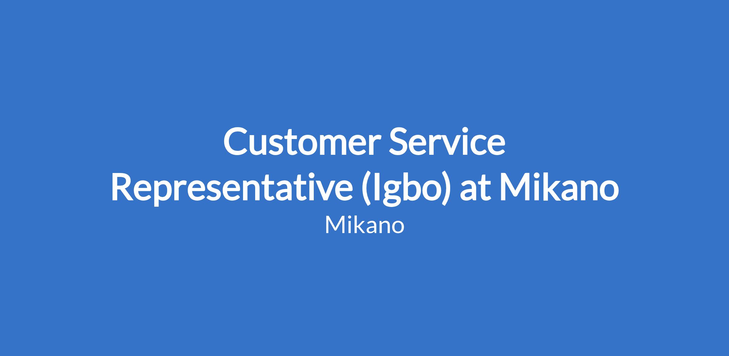Customer Service Representative (Igbo) at Mikano