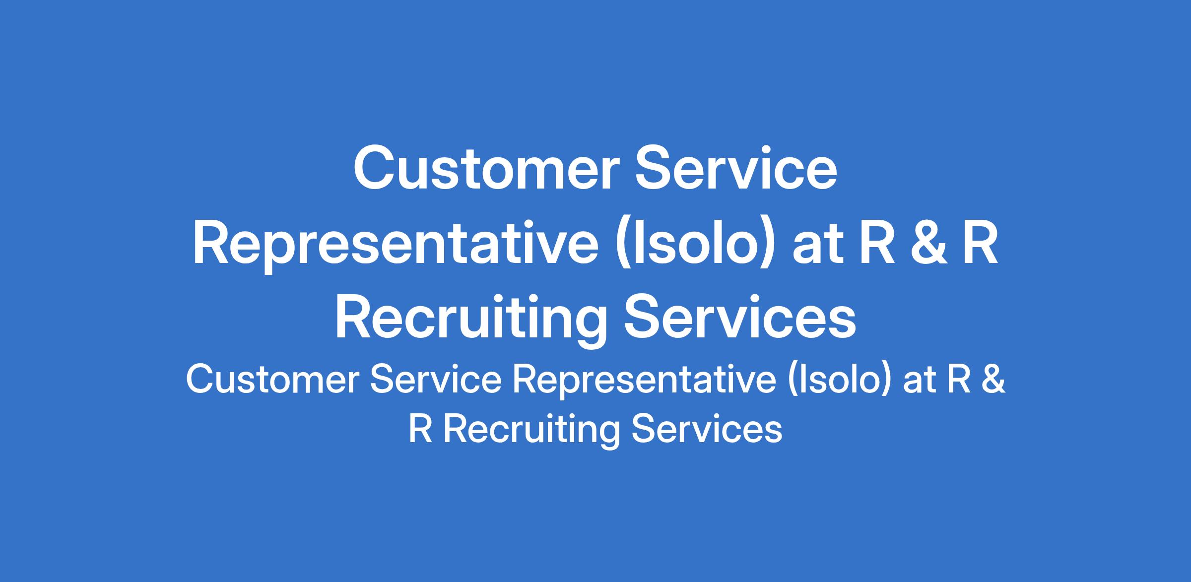 R & R Recruiting Services is recruiting to fill the position of: Customer Service Representative. The position is located in Isolo, Lagos State. Salary: N120,000 - N150,000 per month. Interested candidates should possess a B.Sc Degree / HND qualification.