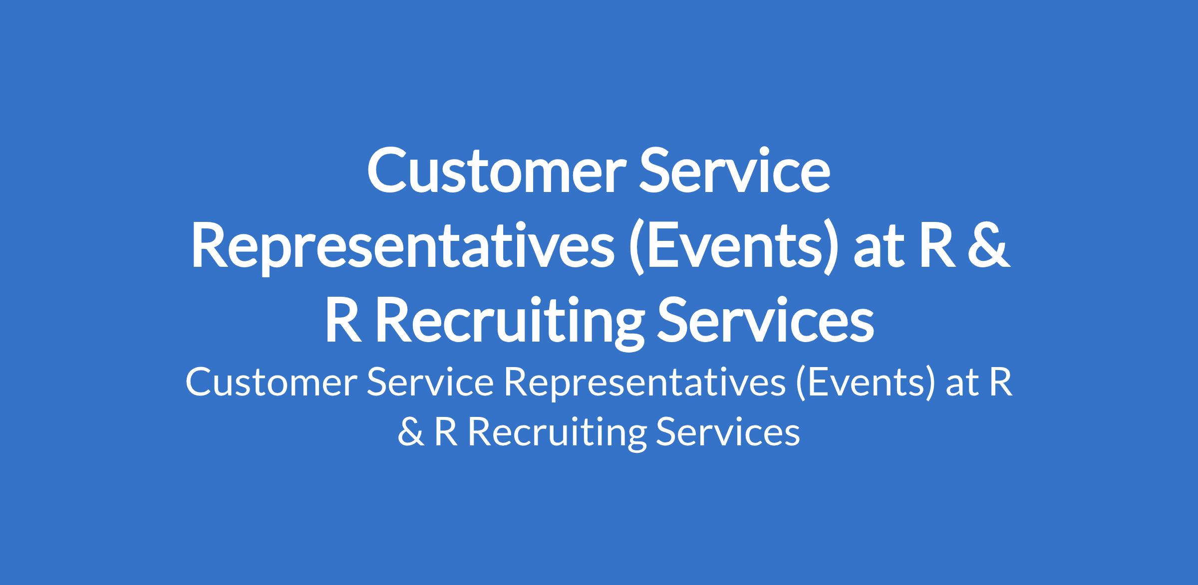 R & R Recruiting Services is recruiting to fill the position of: Customer Service Representative (Events). The position is located in Isolo, Lagos State. Salary: N120,000 - N150,000 monthly. Interested candidates should possess relevant qualifications with proven experience in customer service, hospitality, or event support.