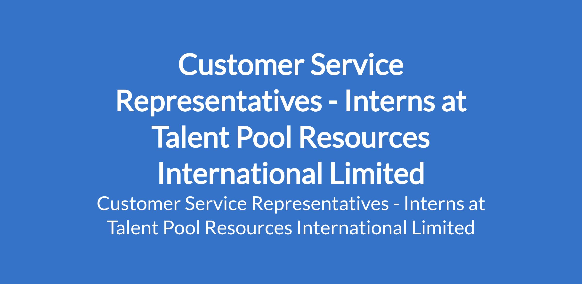 Talent Pool Resources International Limited is recruiting to fill the position of: Customer Service Representative - Intern. The position is located in Lagos State. Interested candidates should be serving as NYSC Corps members / OND Interns (preferred).
