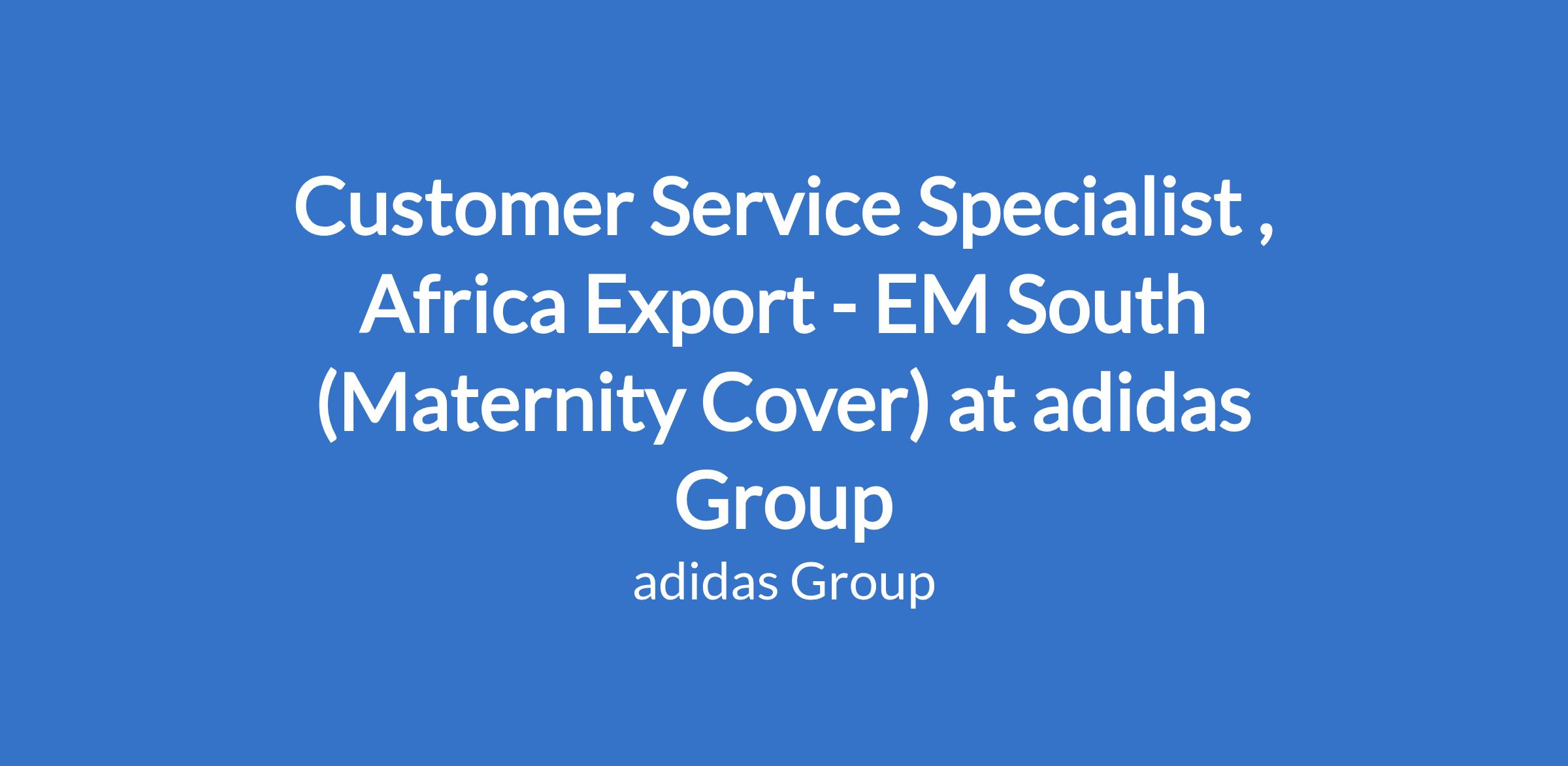 Customer Service Specialist , Africa Export - EM South (Maternity Cover) at adidas Group