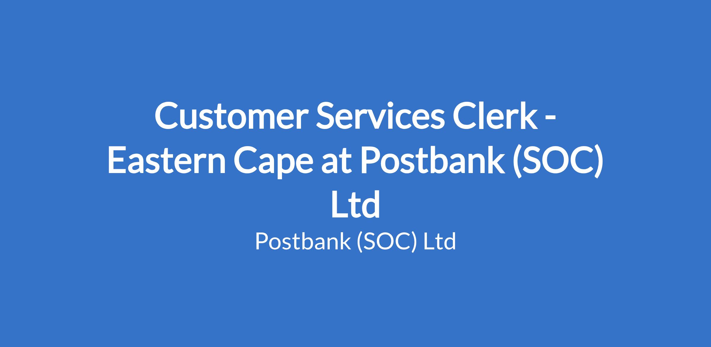 Customer Services Clerk -Eastern Cape at Postbank (SOC) Ltd