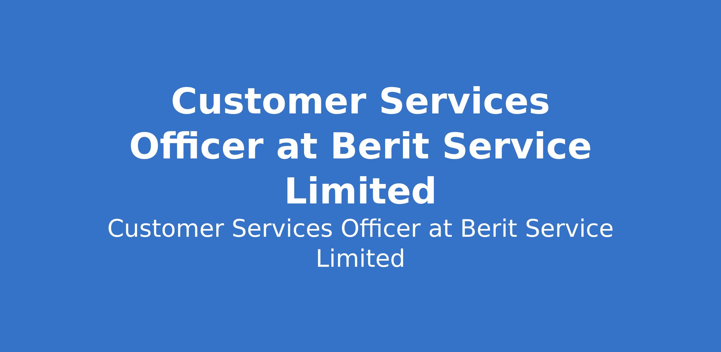 Customer Services Officer at Berit Service Limited