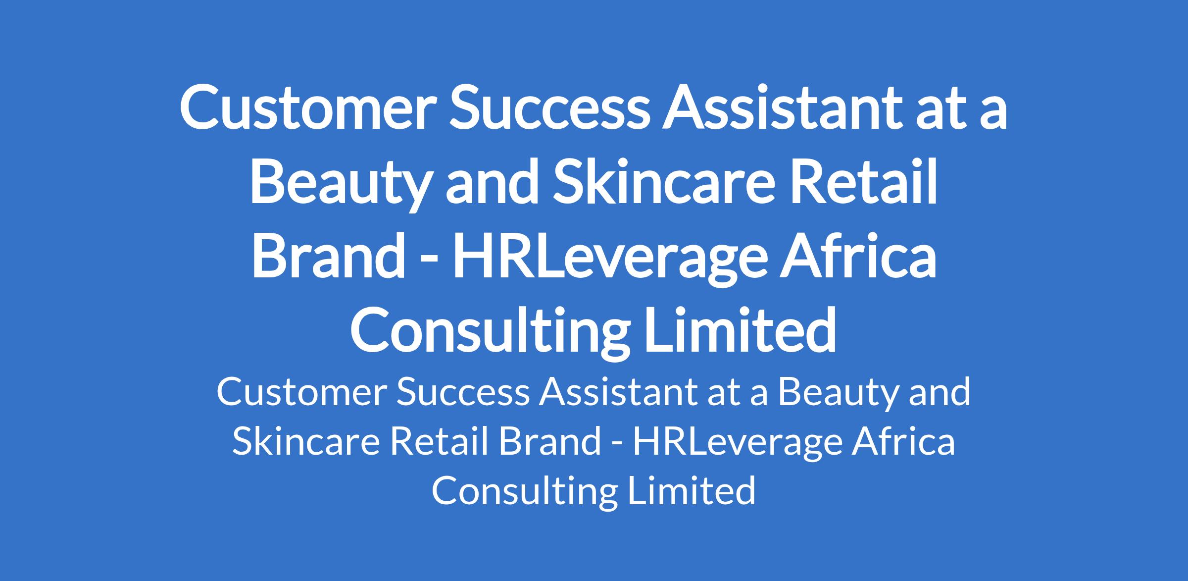 HRLeverage Africa Consulting Limited - Our client, a beauty and skincare retail brand is recruiting to fill the position of: Customer Success Assistant. The position is located in Wuye, Abuja (FCT). Salary: N150,000 - N180,000 / Month. Interested candidates should possess minimum of an HND / BSc. with at least 2 years experience in customer service or retail.