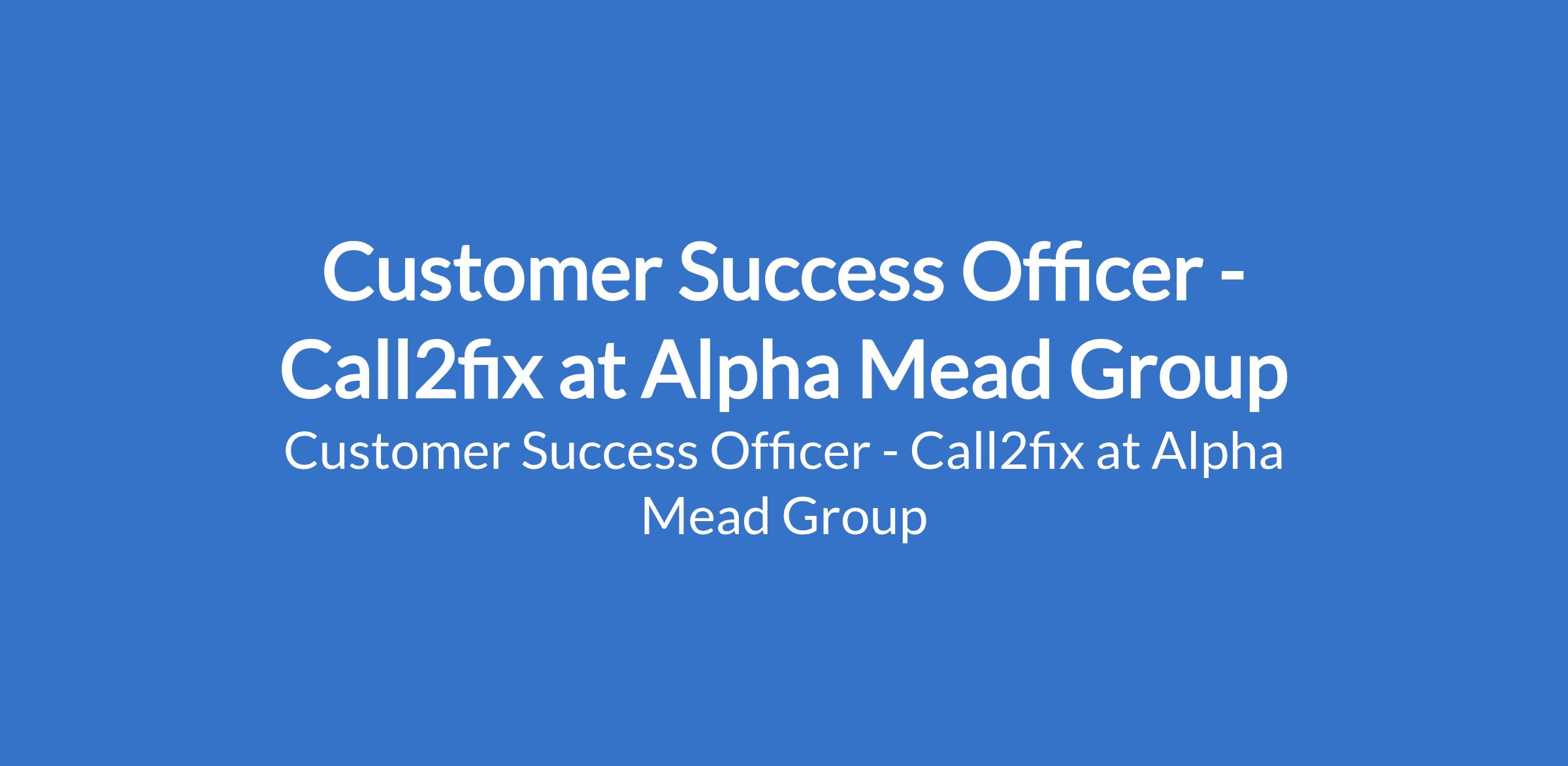 Alpha Mead Group is recruiting to fill the position of: Customer Success Officer - Call2fix. The position is located in Ikoyi, Lagos State. Interested candidates should possess a First Degree in any related field with 2 4 years experience in customer service, customer success, or operations (preferably in a service-based company).