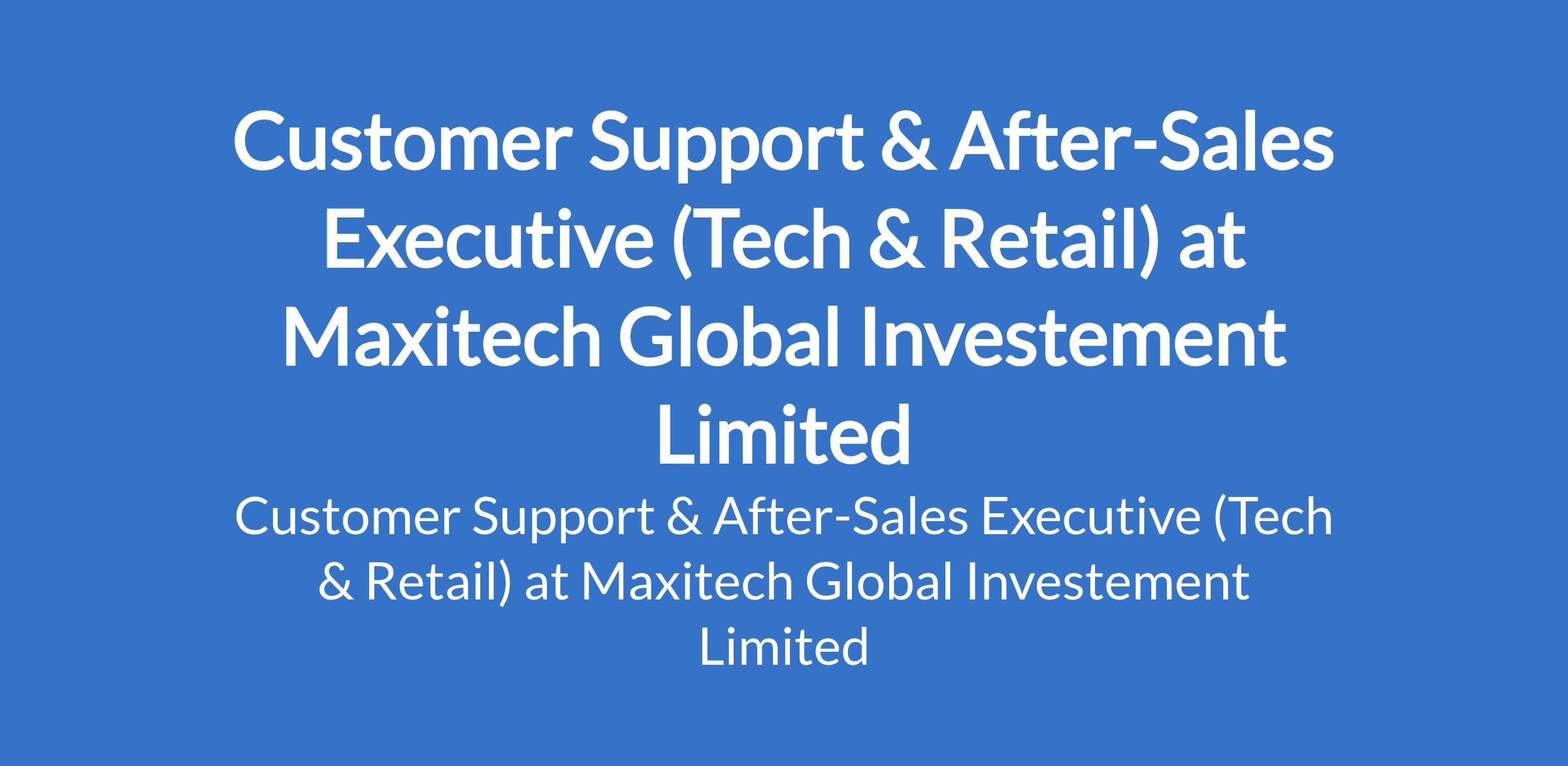 Maxitech Global Investement Limited is recruiting to fill the position of: Customer Support & After-Sales Executive (Tech & Retail). The position is located in Ikeja, Lagos State. Salary: N200,000 - N250,000per month. Interested candidates should possess relevant qualifications with 23 years experience in customer service, after-sales support, or service coordination.