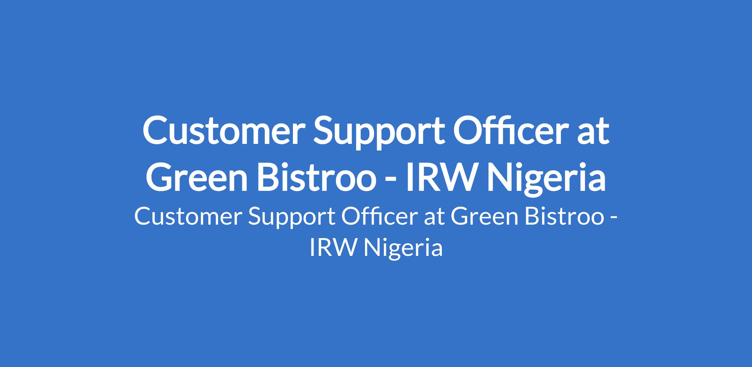 IRW Nigeria - Our client, Green Bistroo, is recruiting to fill the position of: Customer Support Officer. The position is located in Lekki, Lagos State. Interested candidates should possess relevant qualifications with a minimum of one year work experience and proven experience in customer service or a client-facing role.