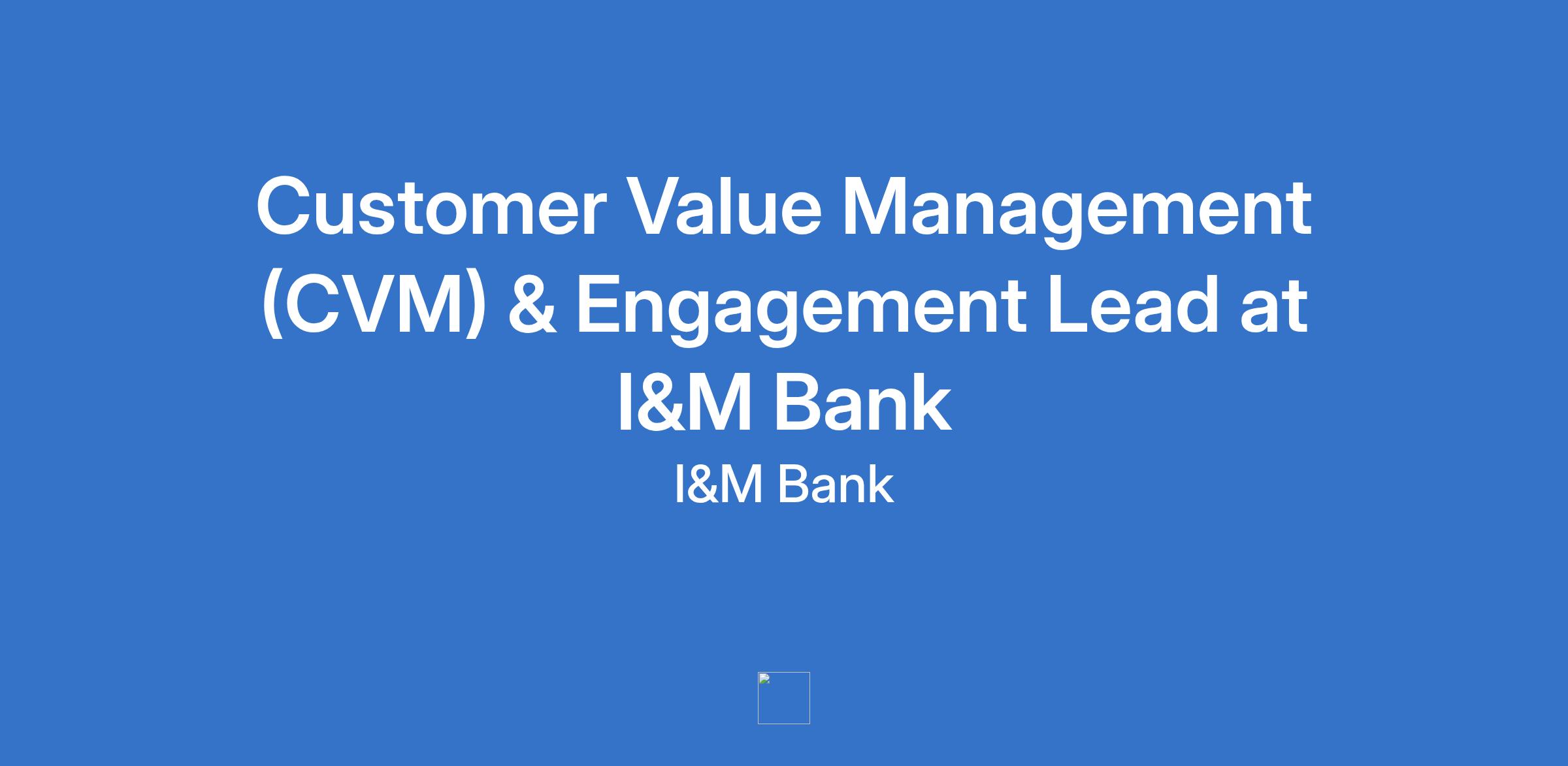 Customer Value Management (CVM) & Engagement Lead at I&M Bank