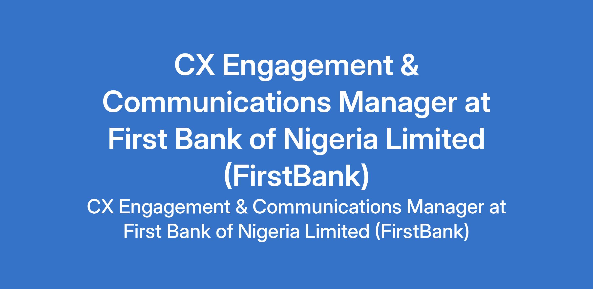 First Bank of Nigeria Limited (FirstBank) is recruiting to fill the position of: CX Engagement & Communications Manager. The position is located in Lagos State. Interested candidates should possess a First Degree in related discipline with 5-years relevant experience in the Banking or other relevant Industry.