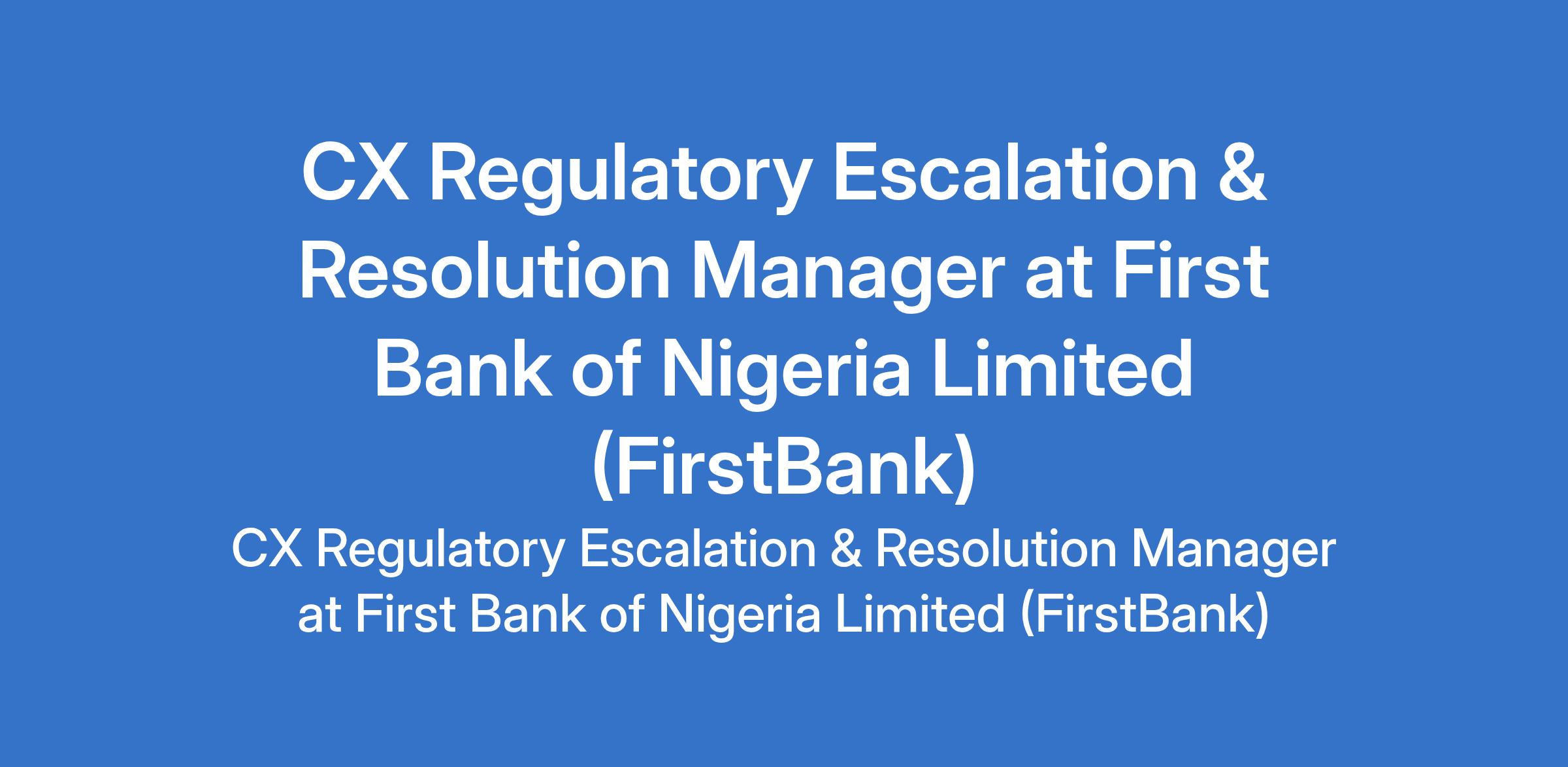 First Bank of Nigeria Limited (FirstBank) is recruiting to fill the position of: CX Regulatory Escalation & Resolution Manager. The position is located in Lagos State. Interested candidates should possess a Minimum of Bachelors Degree in any discipline with a minimum of 5 years relevant experience.