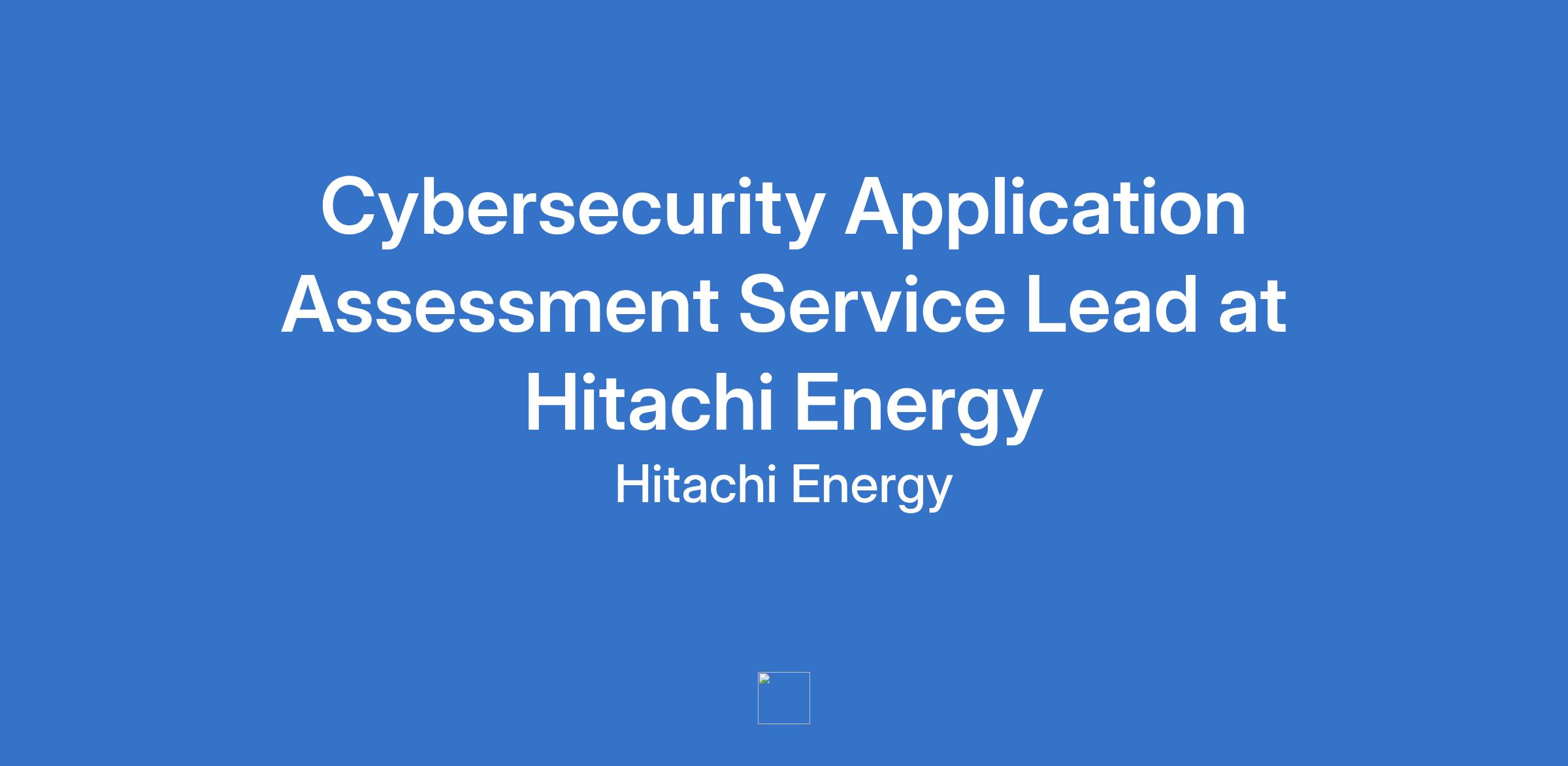 Cybersecurity Application Assessment Service Lead at Hitachi Energy