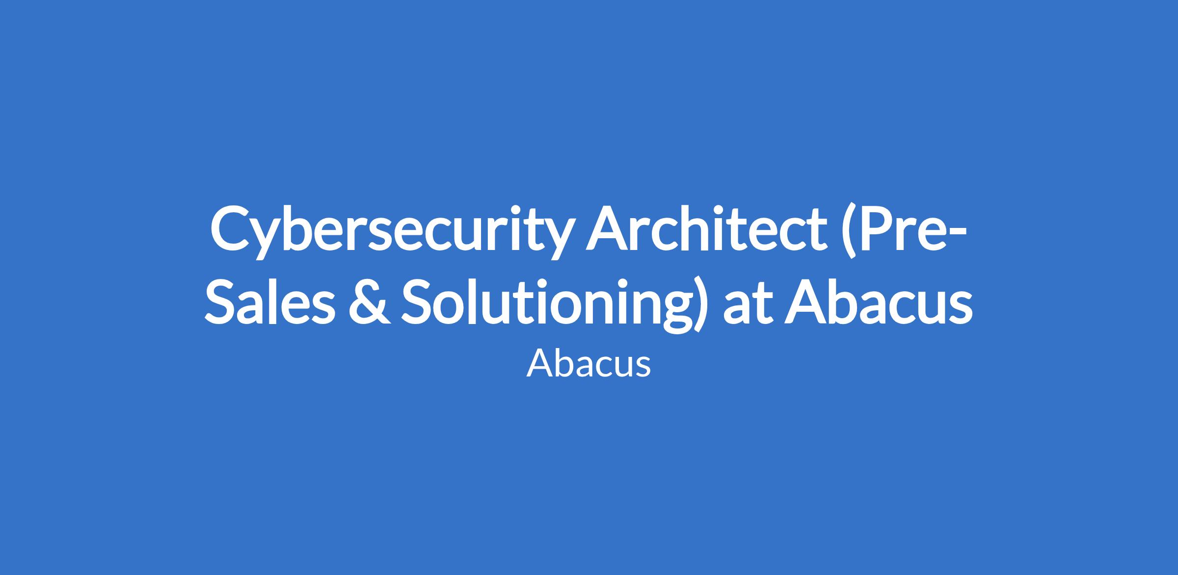 Cybersecurity Architect (Pre-Sales & Solutioning) at Abacus