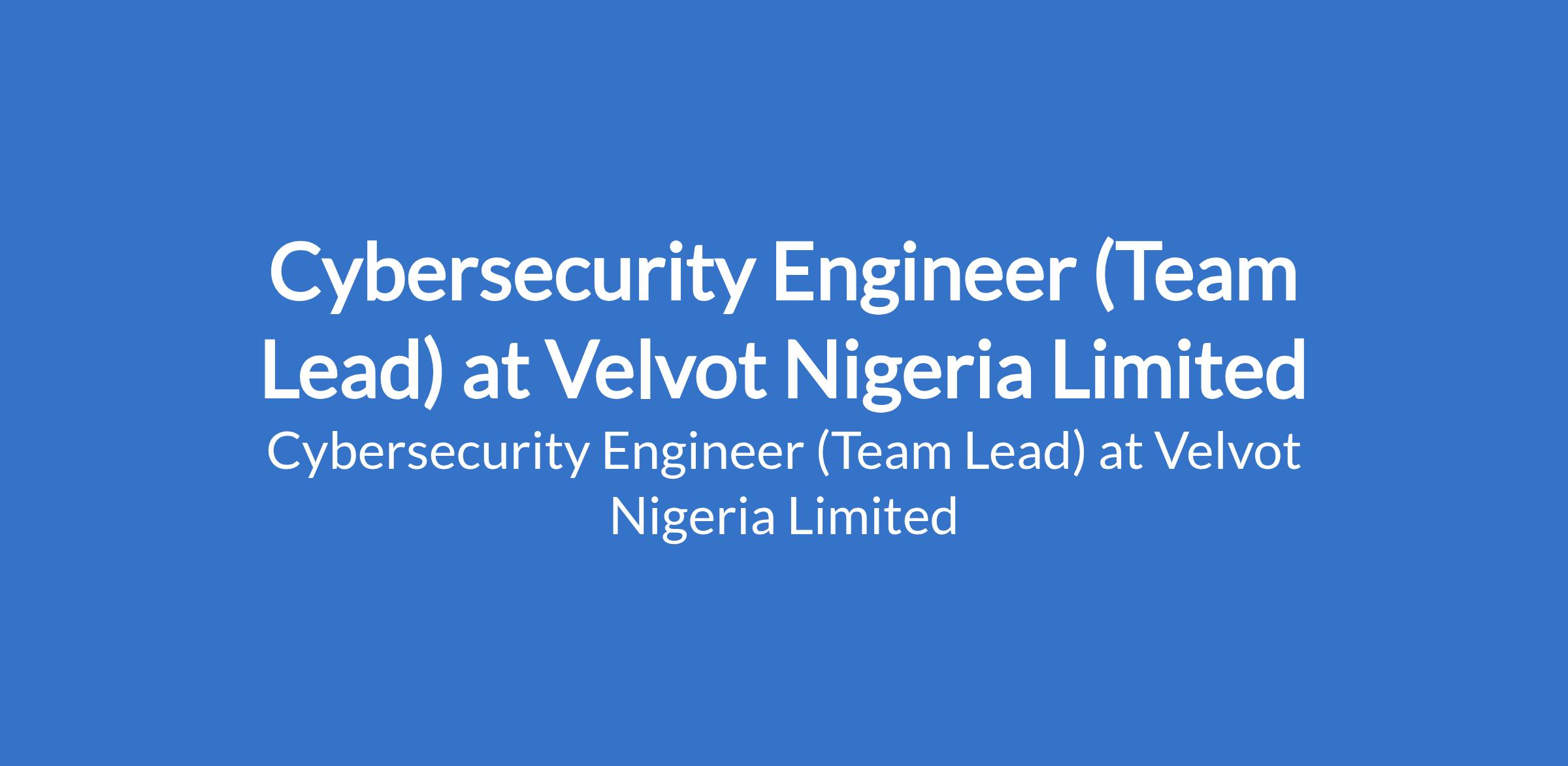 Velvot Nigeria Limited is recruiting to fill the position of: Cybersecurity Engineer (Team Lead). The position is located in Lagos State. Interested candidates should possess a Bachelors Degree in Computer Science, Cybersecurity, or equivalent practical experience with 4 years of experience in Information Security, with at least 12 years in a lead capacity.