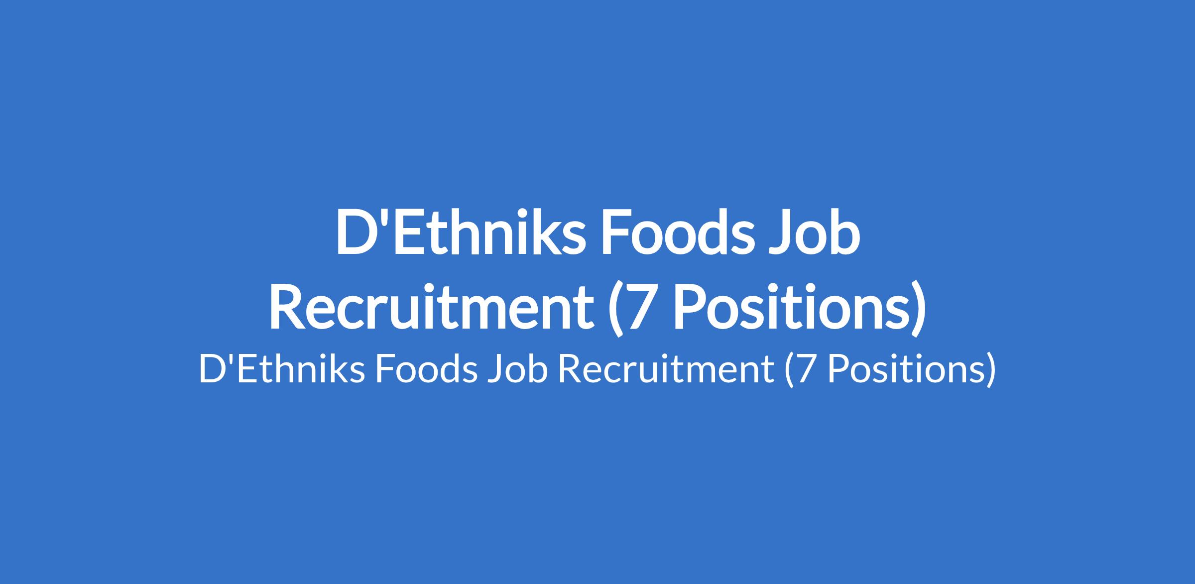 D'Ethniks Foods Job Recruitment (7 Positions)