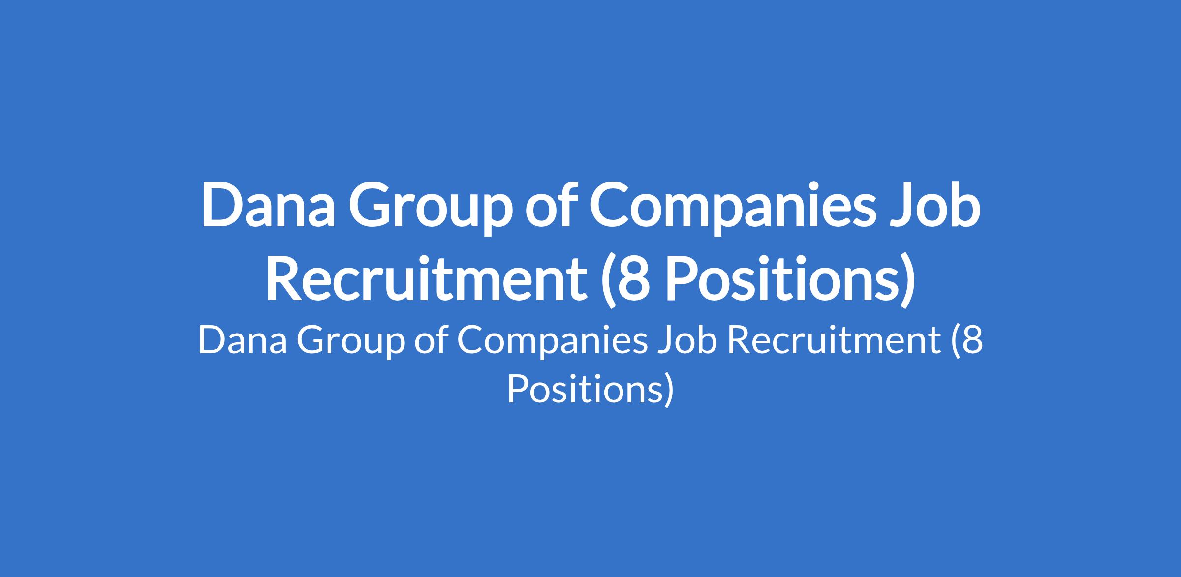 Dana Group of Companies is currently recruiting suitably qualified candidates to fill the following positions in Oyo, Niger & Lagos States: Graphics Designer (Motion & AI), Customer Care Executive, Legal Assistant; Security Guard; Driver; Customer Service Representative (Dana Motors); Medical Sales Canvasser (Dana Pharm); and Canvasser.