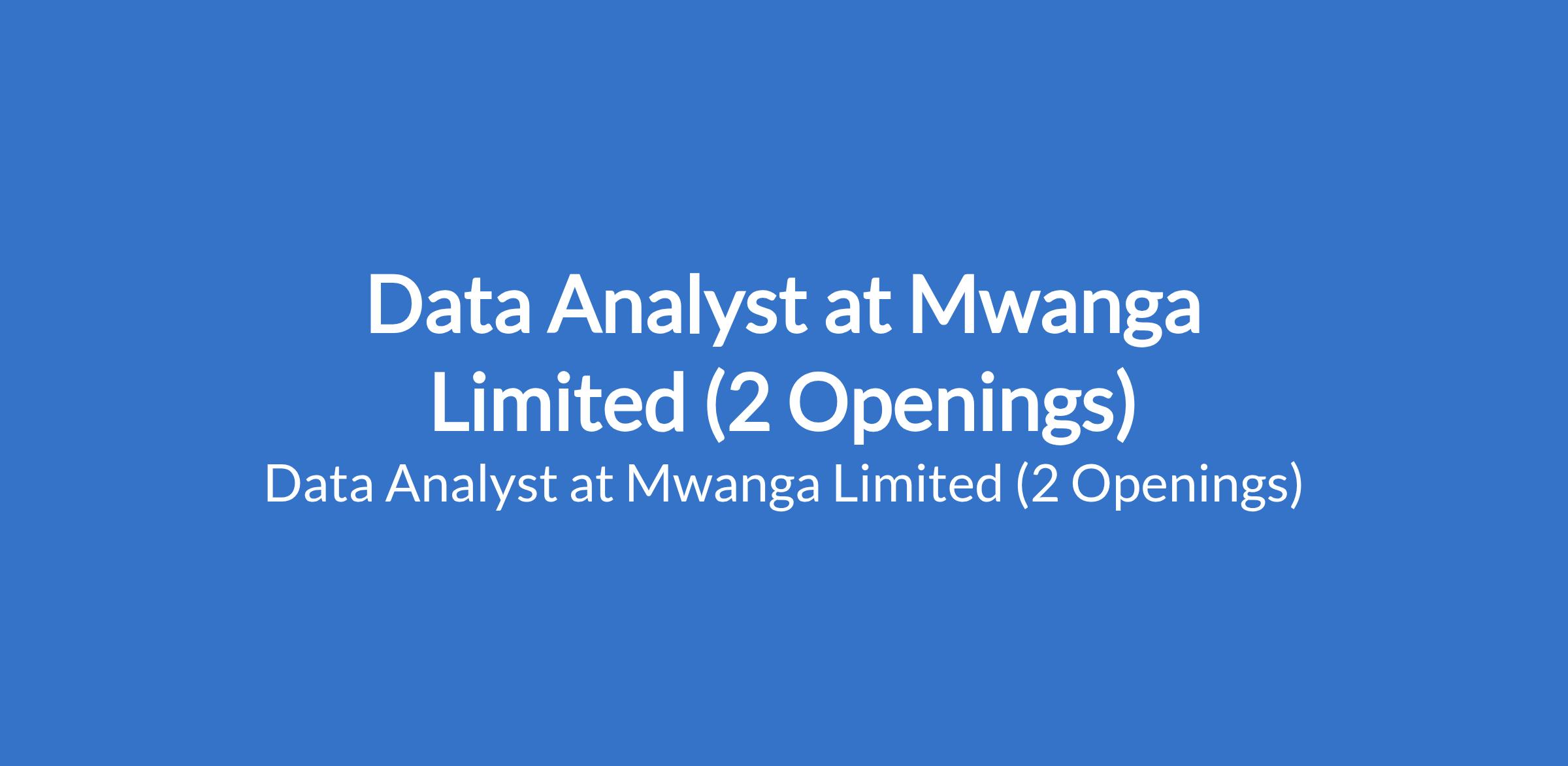Mwanga Limited is recruiting to fill the position of: Data Analyst. The position is located in Maryland - Lagos and Kwara States. The successful candidate will be responsible for gathering, analyzing, and interpreting data to support strategic decisions and operational improvements on all projects. Interested candidates should possess a minimum of HND / B.Sc Degree in any field with 2 3 years proven experience as a Data Analyst or in a similar analytical role.