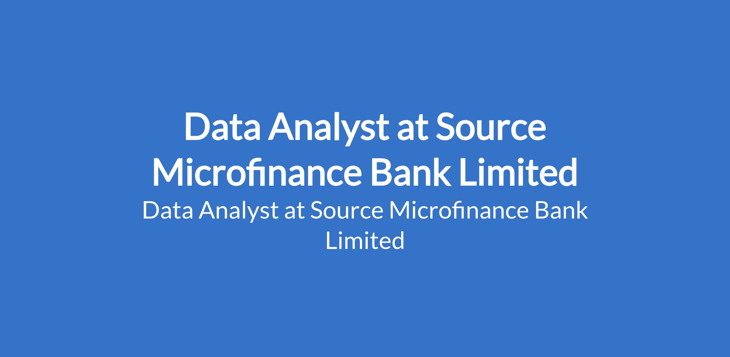 Source Microfinance Bank Limited is recruiting to fill the position of: Data Analyst. The position is located in Lagos State. Interested candidates should possess relevant qualifications with proven experience working with both relational (e.g., MySQL, PostgreSQL) and non-relational databases (e.g., MongoDB, Cassandra).