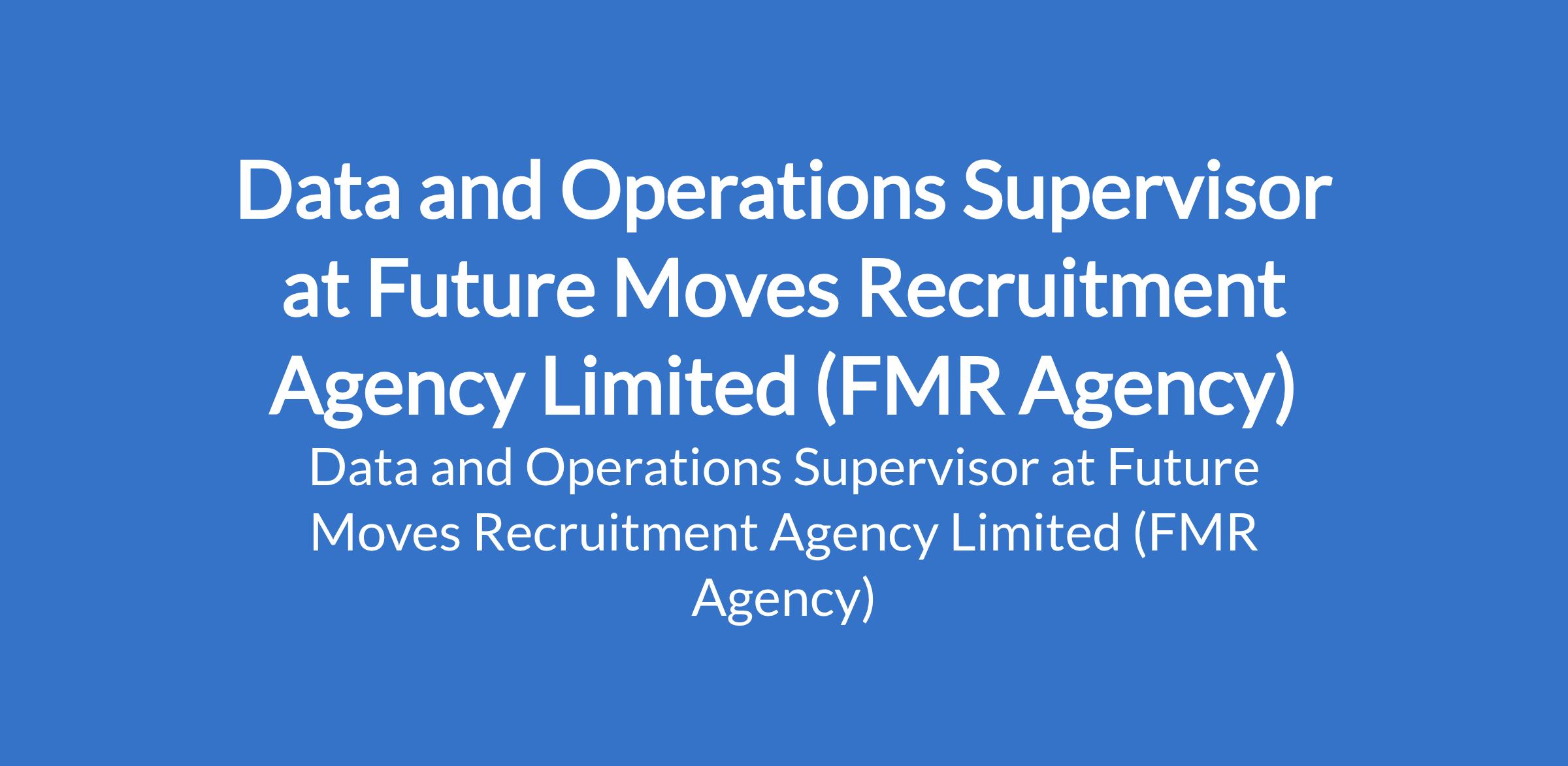 Future Moves Recruitment Agency Limited (FMR Agency) is recruiting to fill the position of: Data and Operations Supervisor. The position is located in Arepo, Ogun State. Salary: N100,000 - N150,000 monthly. Interested candidates should a minimum of OND / HND / B.Sc. Degree in Business Administration or any related discipline with relevant work experience and must reside around Arepo axis (Magboro, Mowe, Ibafo, Berger axis preferred).