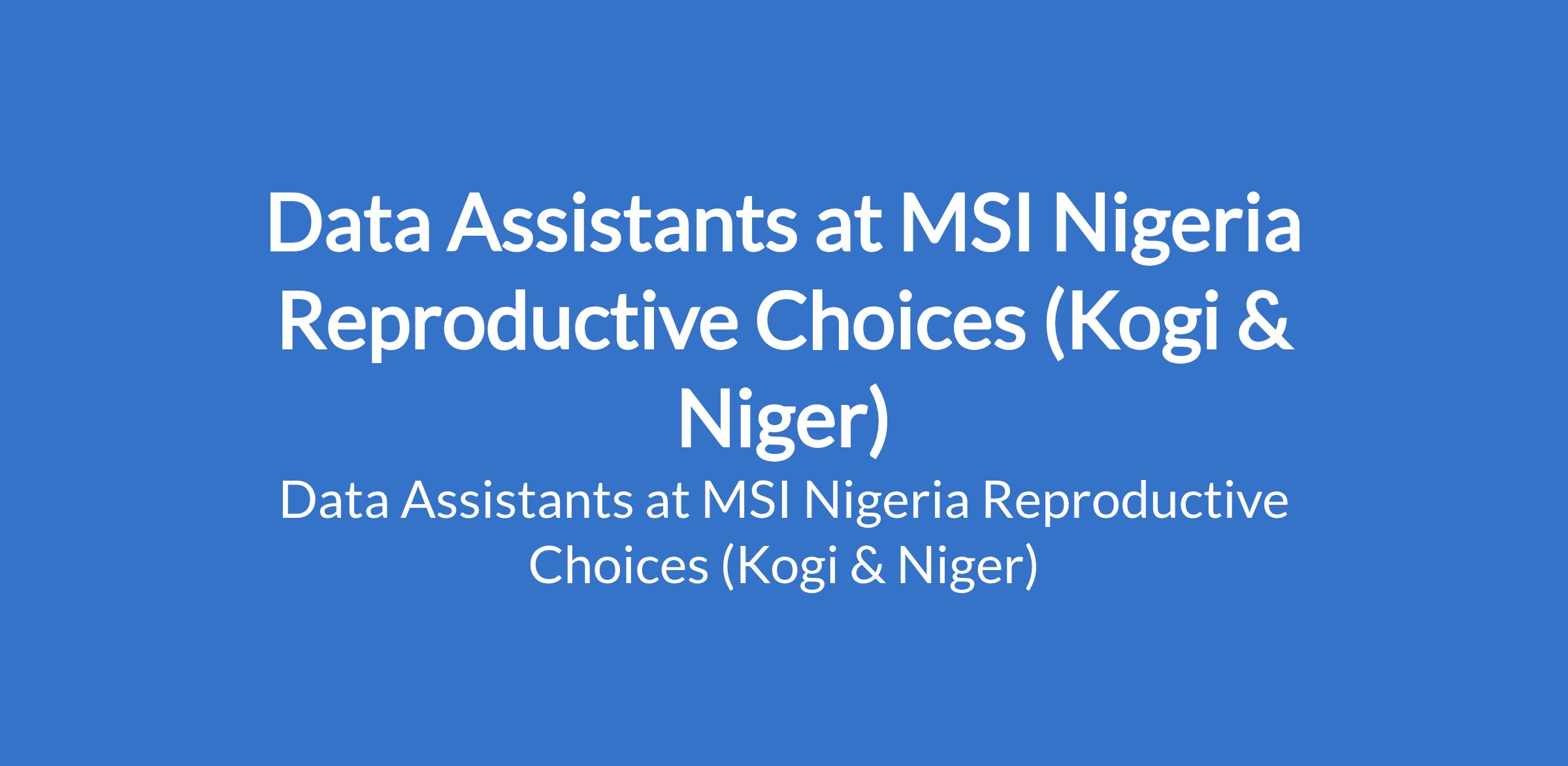 MSI Nigeria Reproductive Choices is recruiting to fill the position of: Data Assistant. The position is located in Kogi and Niger States. Interested candidates should possess a Bachelors Degree or Higher National Diploma in Statistics, Computer Science, or any other relevant field with a minimum of 1 year experience working on health information systems for either government or non-governmental organizations.