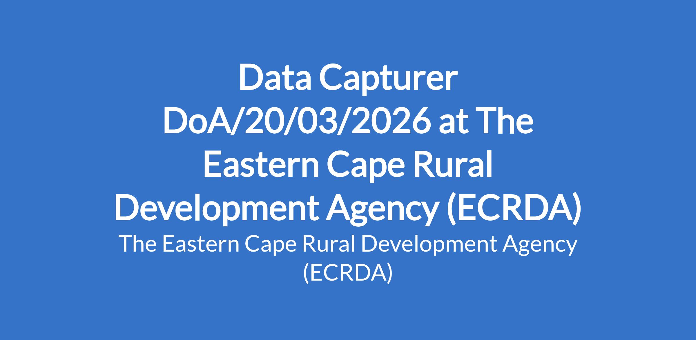 Data Capturer DoA/20/03/2026 at The Eastern Cape Rural Development Agency (ECRDA)