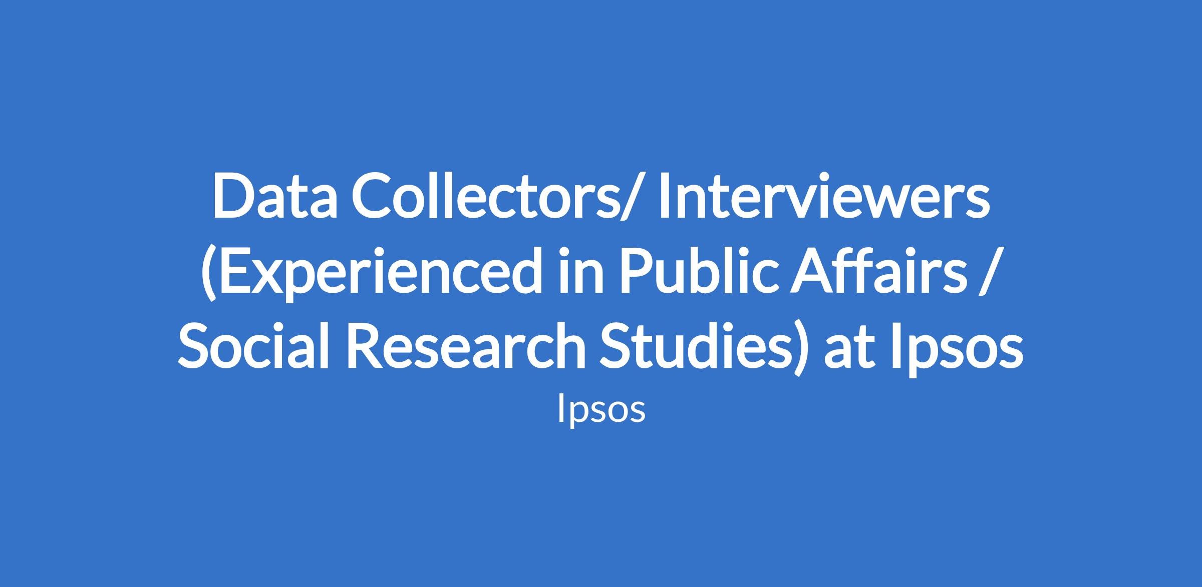 Data Collectors/ Interviewers (Experienced in Public Affairs / Social Research Studies) at Ipsos