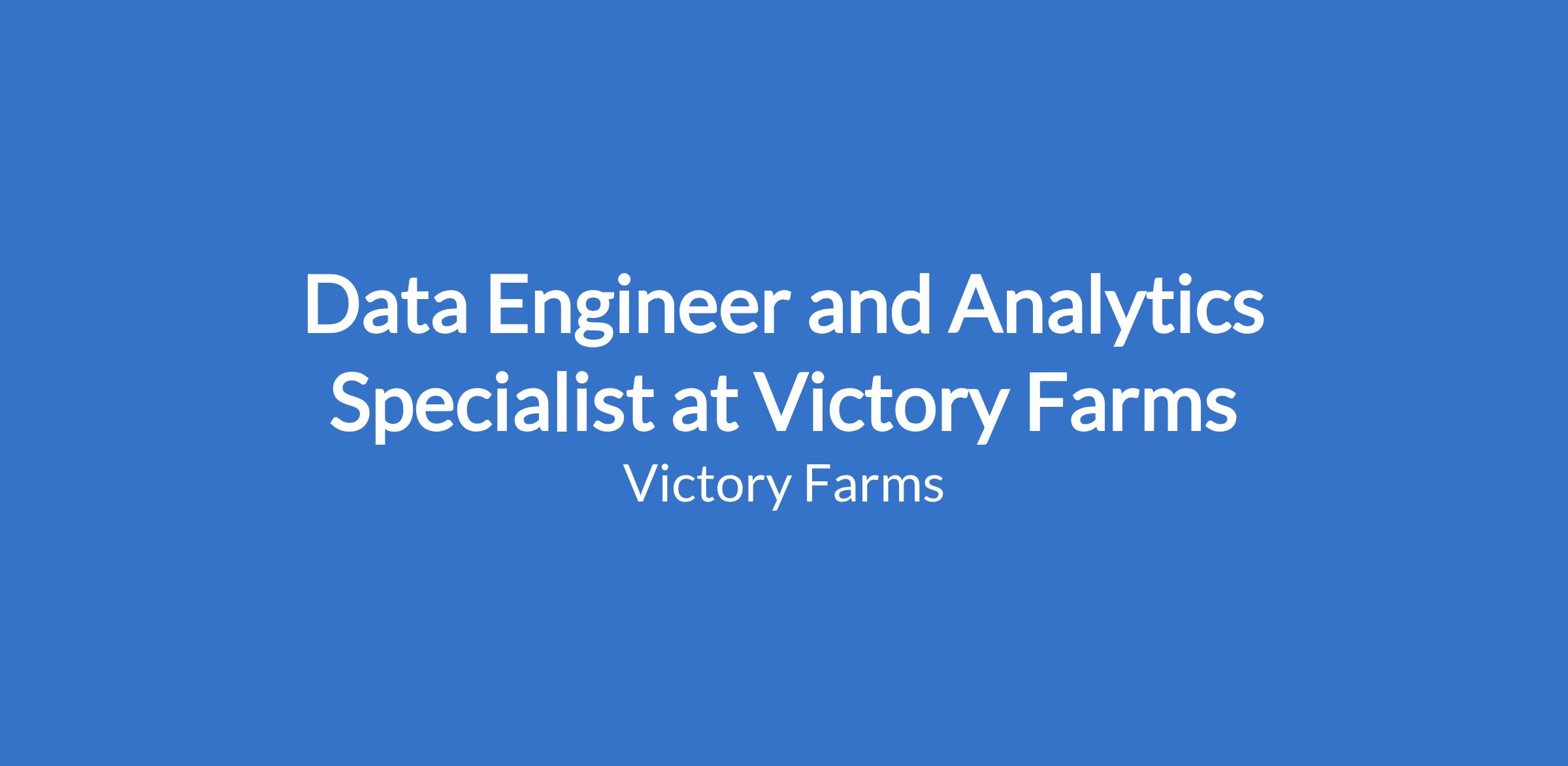 Data Engineer and Analytics Specialist at Victory Farms
