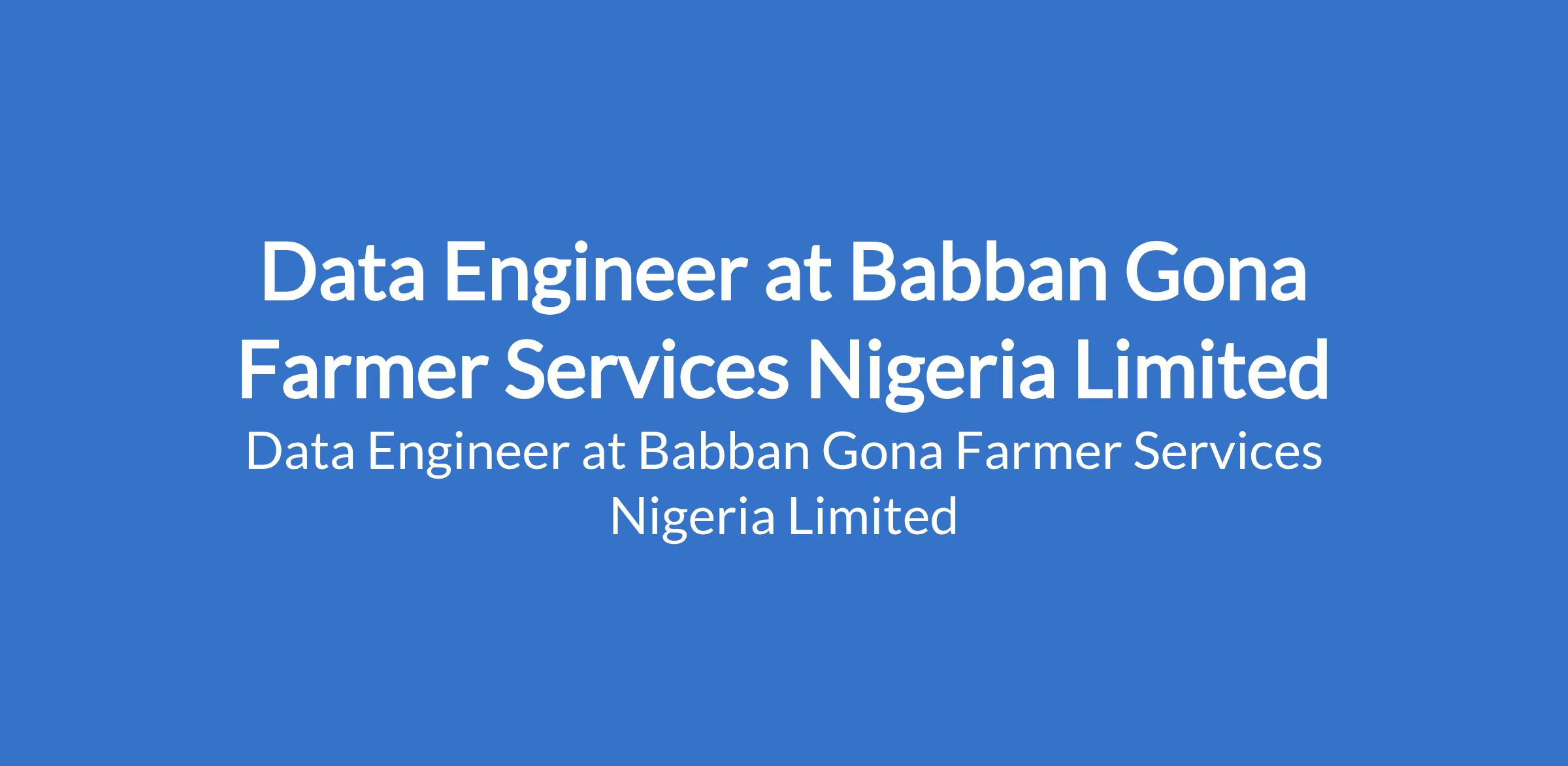 Babban Gona Farmer Services Nigeria Limited is recruiting to fill the position of: Data Engineer. The position is located in Lagos State. Interested candidates should possess relevant qualifications with 24 years of hands-on experience as a Data Engineer or in a similar data-focused role.