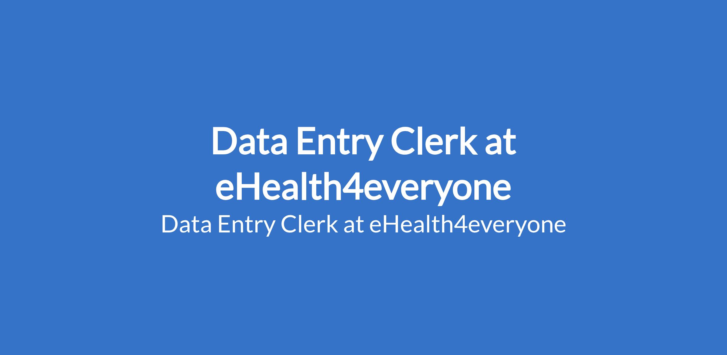 Data Entry Clerk at eHealth4everyone