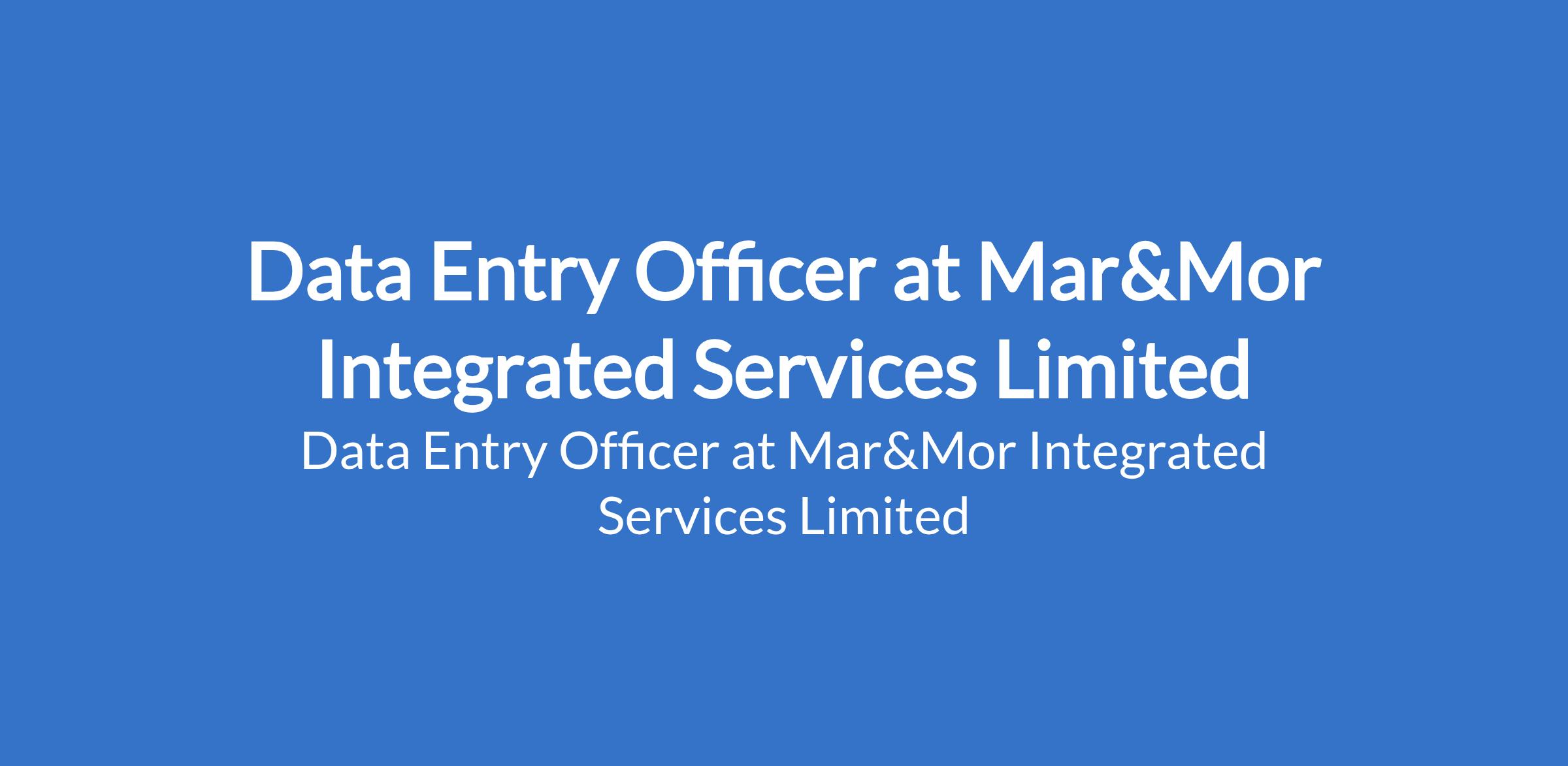 Data Entry Officer at Mar&Mor Integrated Services Limited