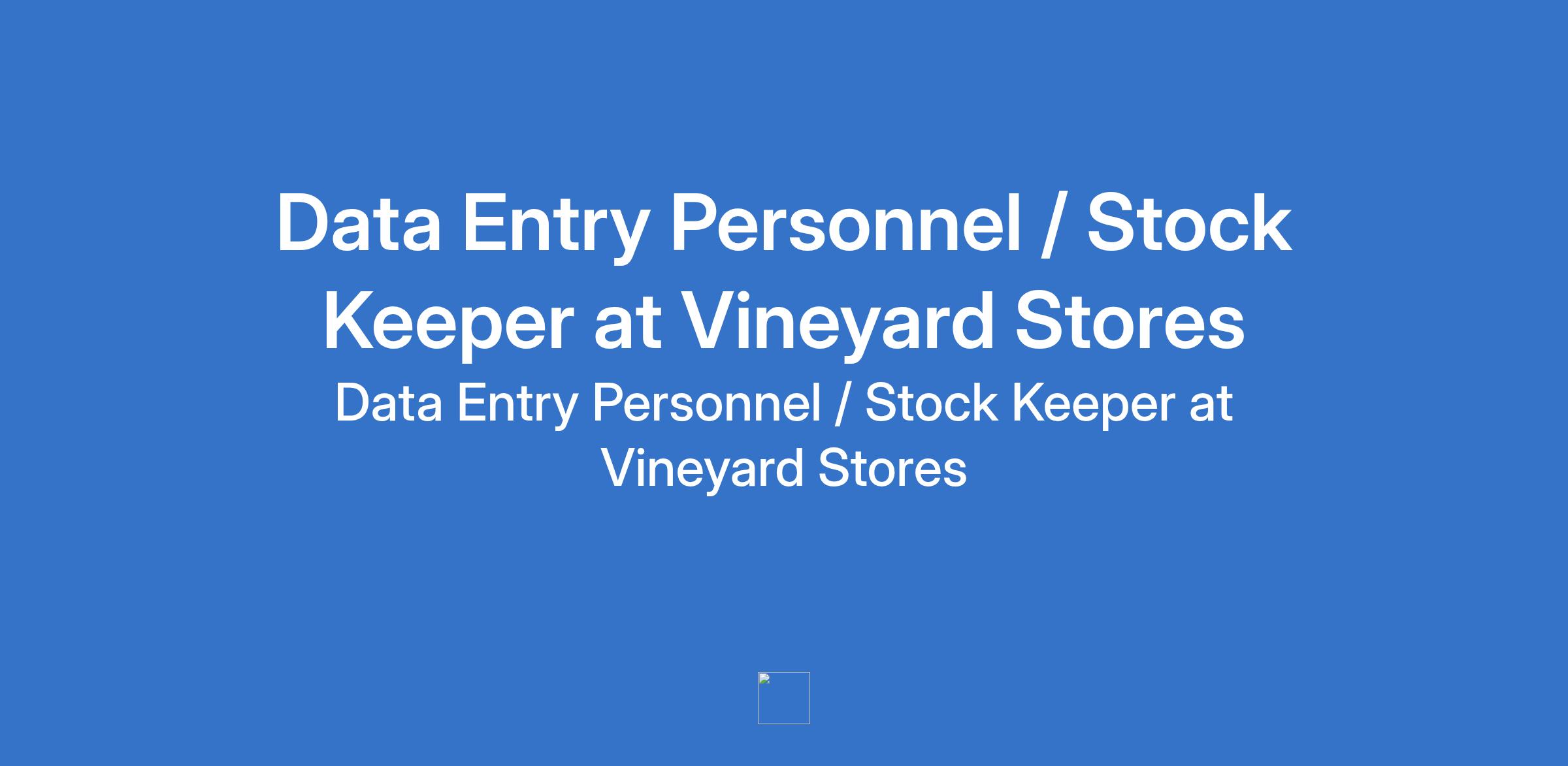 Data Entry Personnel / Stock Keeper at Vineyard Stores