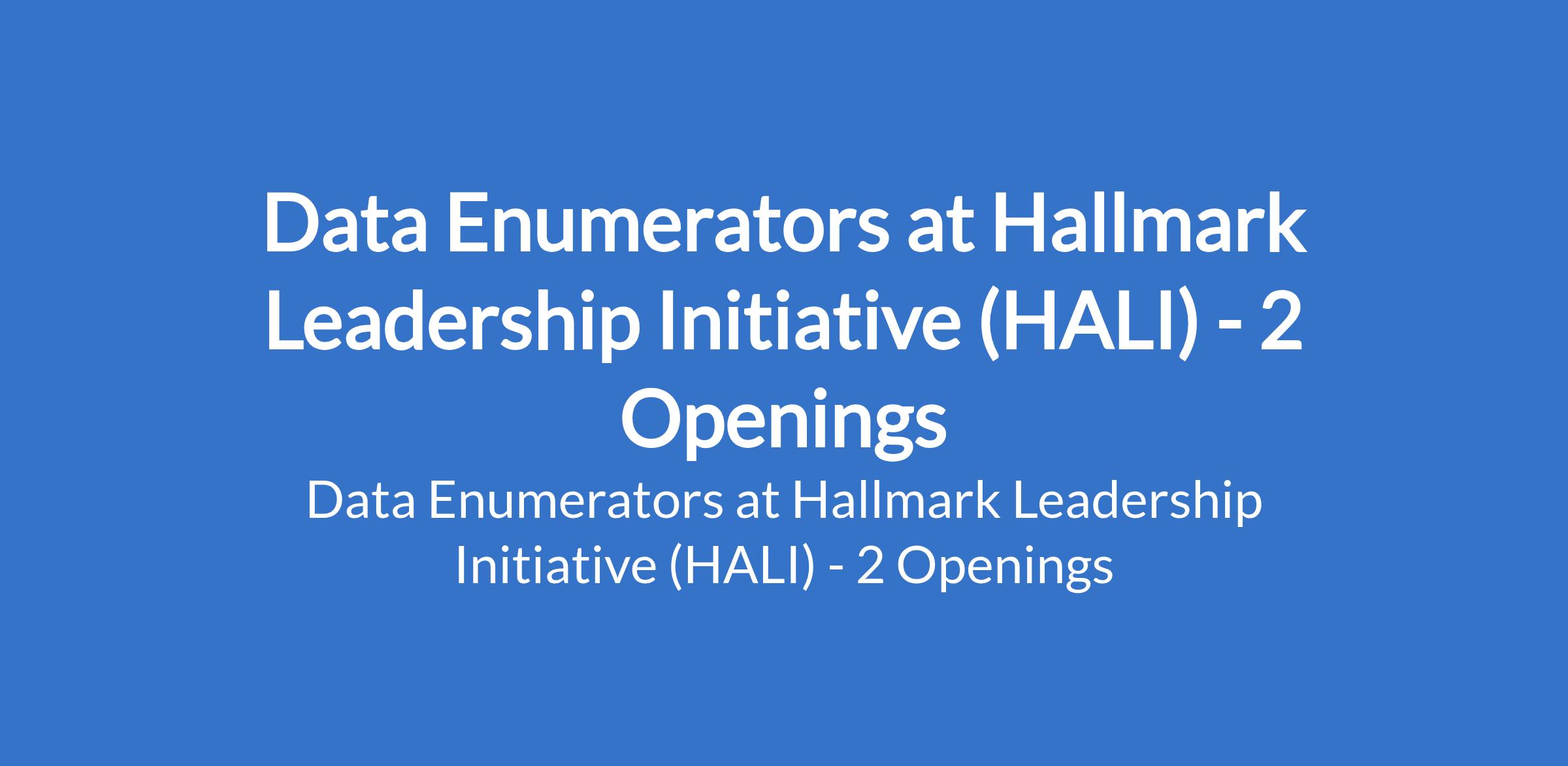 Hallmark Leadership Initiative (HALI) is recruiting to fill the position of: Data Enumerator. The position is located in Maiduguri and Jere - Borno State. Interested candidates should possess minimum of an SSCE qualification with 2 years of proven experience conducting assessment (Data Collection).
