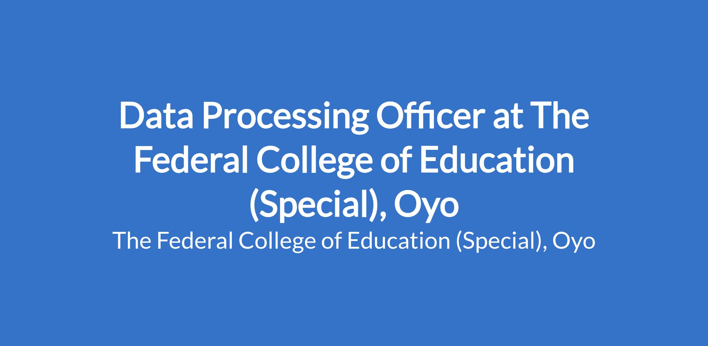 Data Processing Officer at The Federal College of Education (Special), Oyo