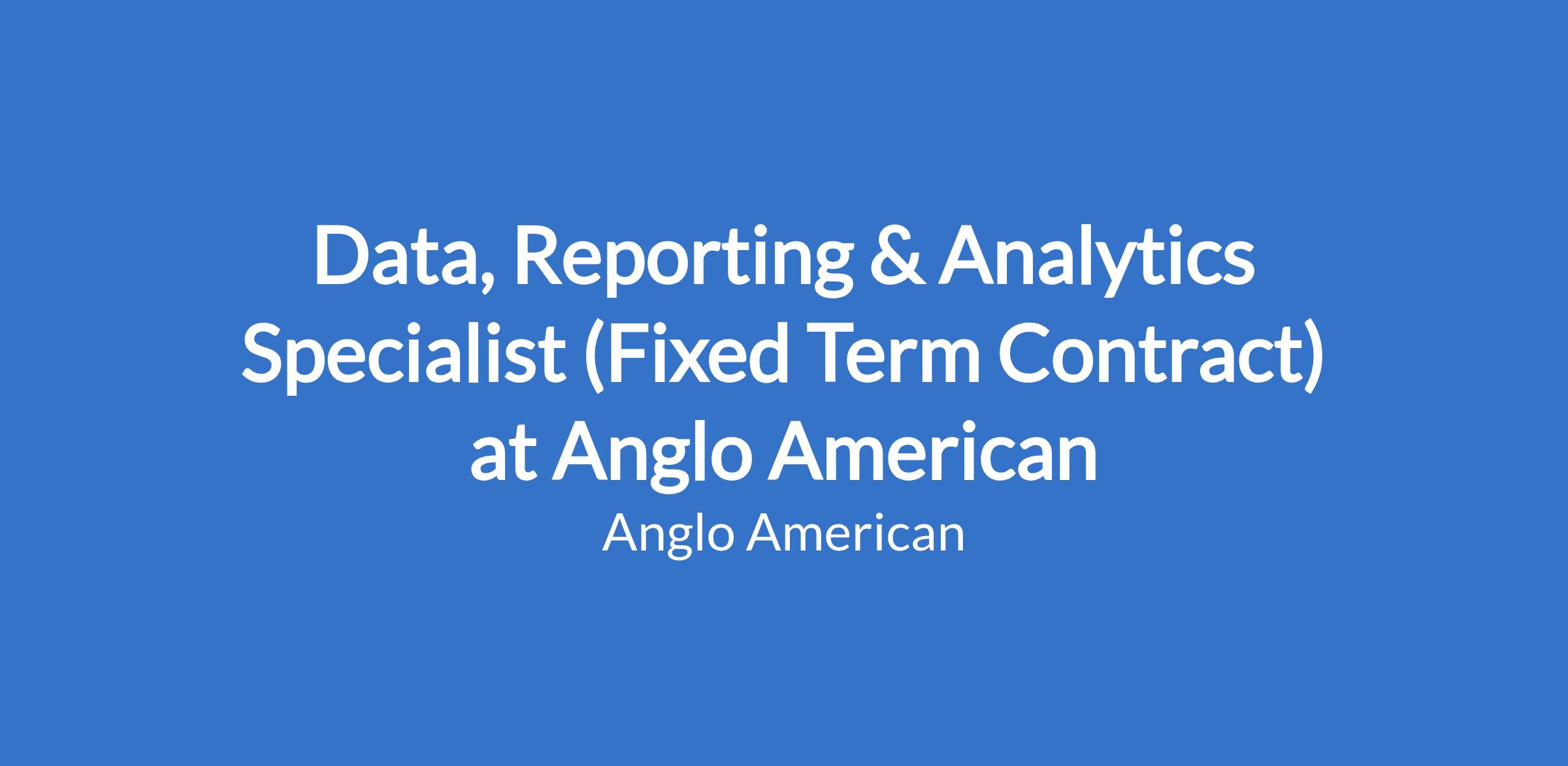 Data, Reporting & Analytics Specialist (Fixed Term Contract) at Anglo American
