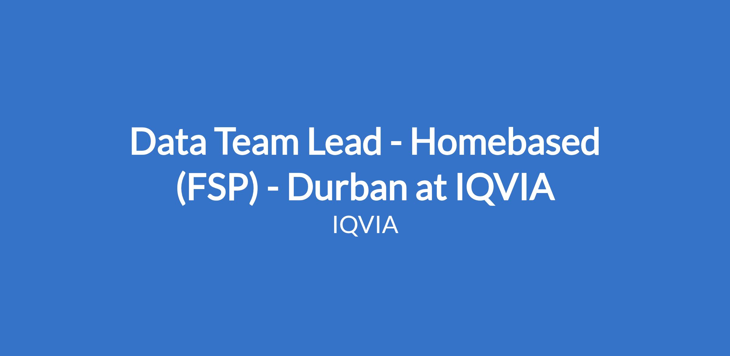 Data Team Lead - Homebased (FSP) - Durban at IQVIA