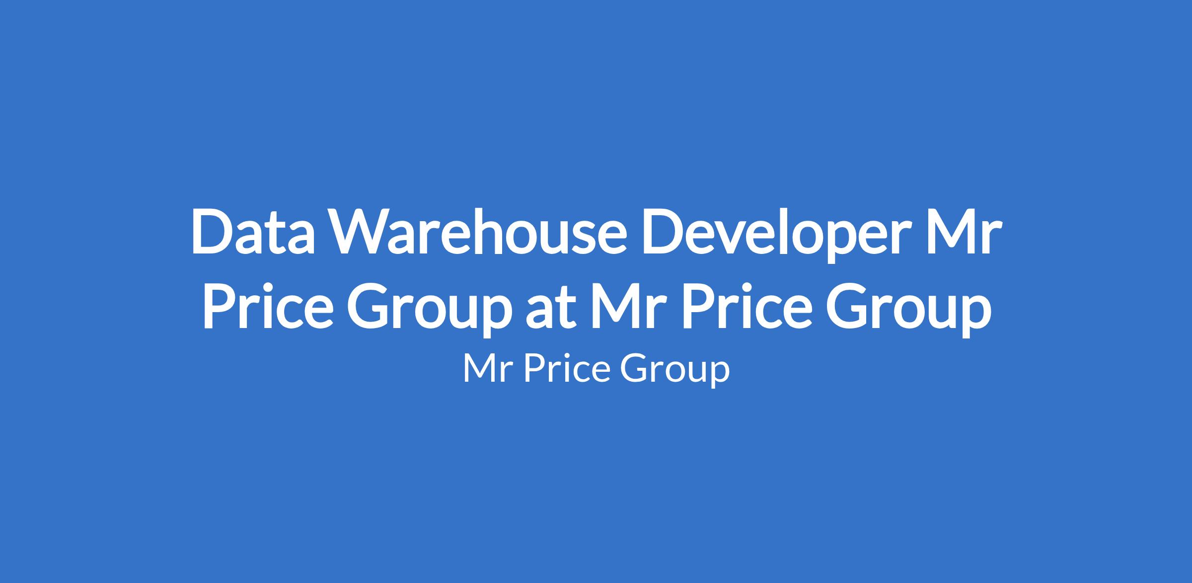 Data Warehouse Developer Mr Price Group at Mr Price Group