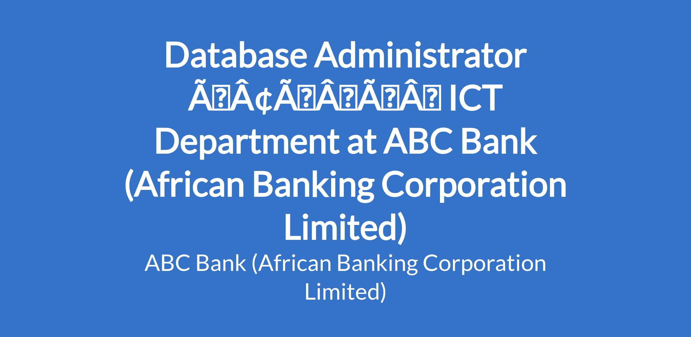 REPORTING TO: MANAGER - DATABASE ADMINISTRATOR