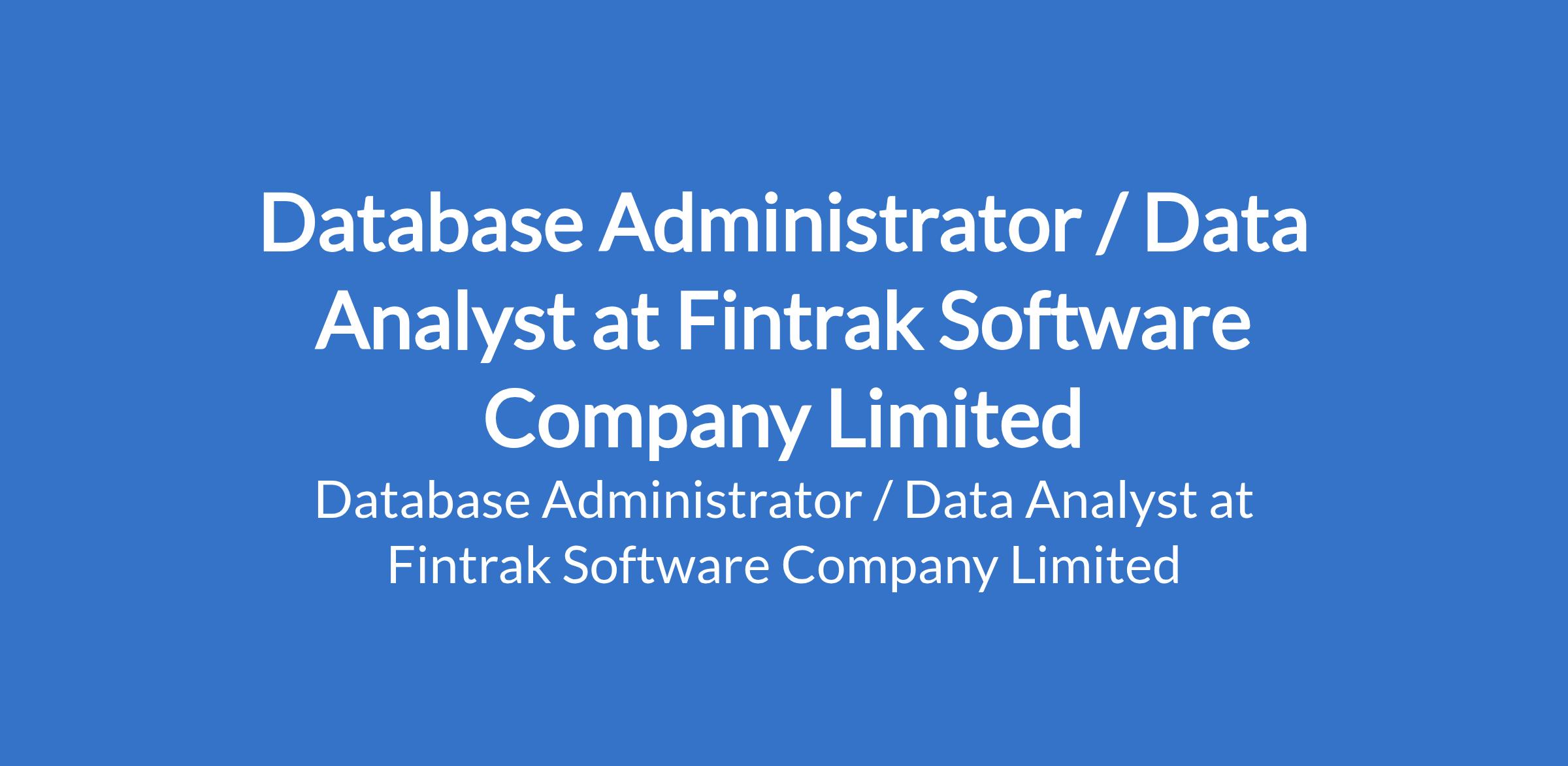 Fintrak Software Company Limited is recruiting to fill the position of: Database Administrator / Data Analyst. The position is located in Lagos State. Interested candidates should possess a Bachelor's Degree in Computer Science, Statistics, Information Technology, or a related field with 25 years of experience in database administration and/or data analysis.