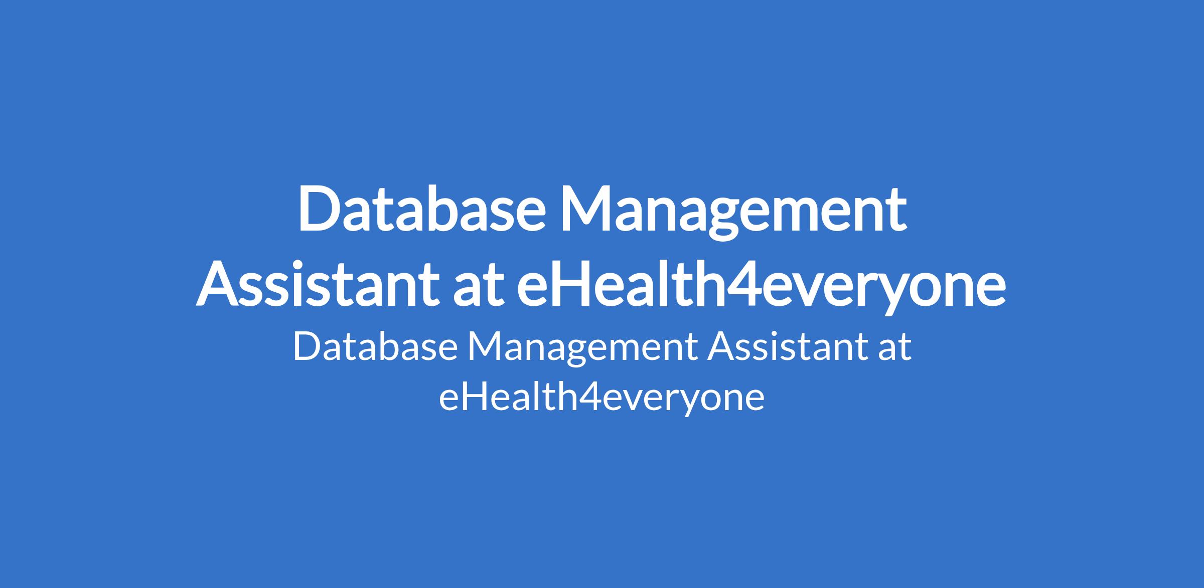 eHealth4everyone is recruiting to fill the position of: Database Management Assistant. The position is located in Abuja (FCT). Interested candidates should preferably possess a minimum of Bachelor's Degree in Management Information Systems, Computer Science / Engineering, Mathematics, Statistics or a Degree with sufficient data and database concepts with 3 years experience in database management.