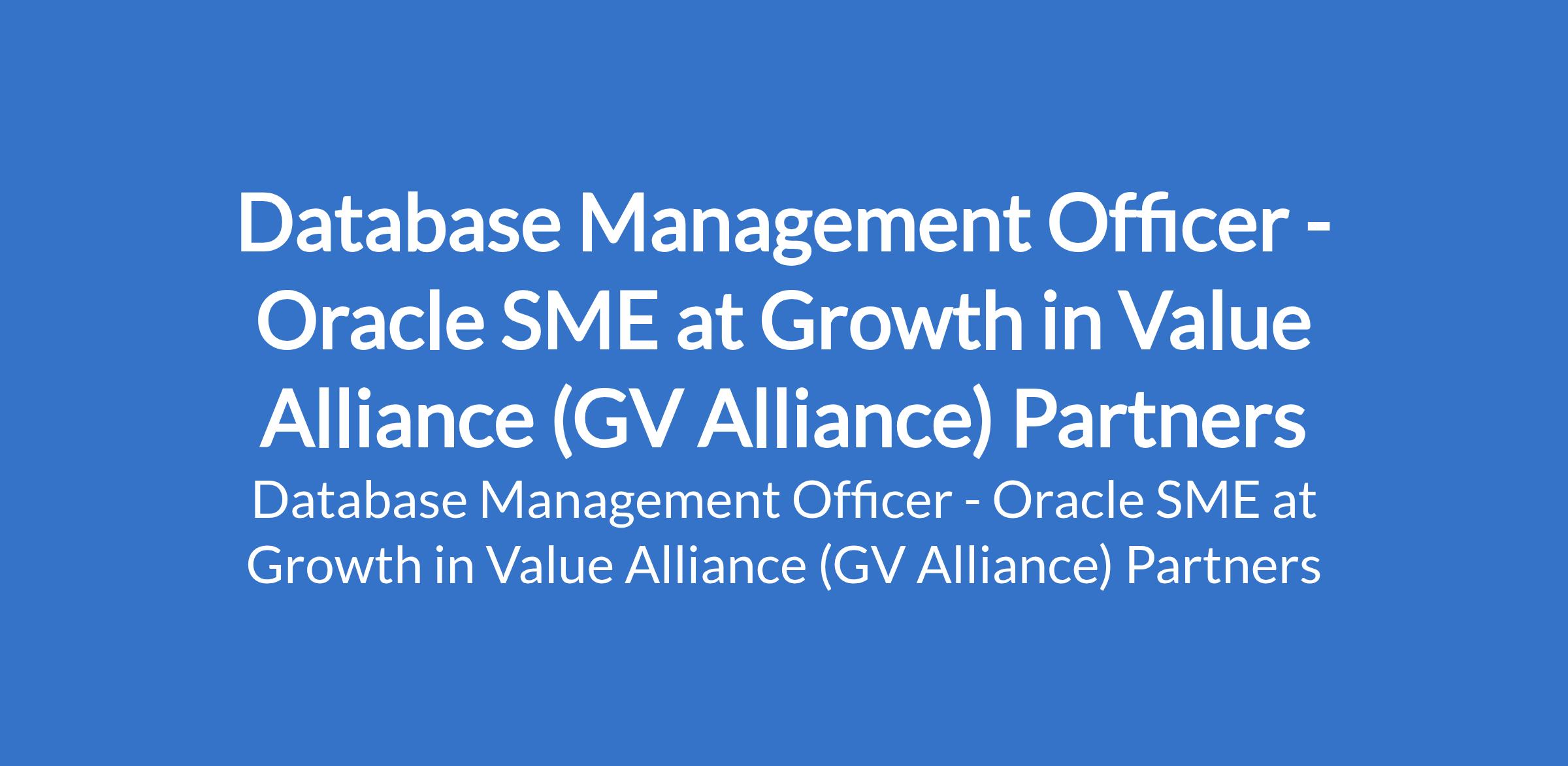 Growth in Value Alliance (GV Alliance) Partners is recruiting to fill the position of: Database Management Officer - Oracle SME. The position is located in Lagos State. Interested candidates should possess relevant qualifications with a minimum of 5+ years post-NYSC professional experience.